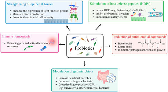 - Yan, F.; Polk, D.B. Probiotics and Probiotic-Derived Functional Factors—Mechanistic Insights into Applications for Intestinal Homeostasis. Front. Immunol. 2020, 11, 1428. [Google Scholar] [CrossRef]