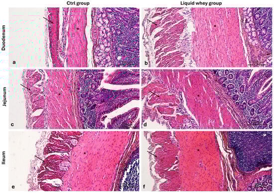 Mhalhel, K.; Cavallaro, M.; Pansera, L.; Ledesma, L.H.; Levanti, M.; Germanà, A.; Sutera, A.M.; Tardiolo, G.; Zumbo, A.; Aragona, M.; et al. Histological Assessment of Intestinal Changes Induced by Liquid Whey-Enriched Diets in Pigs. Vet. Sci. 2025, 12, 716. https://doi.org/10.3390/vetsci12080716