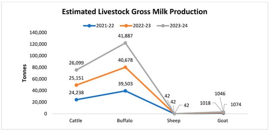- Siddique, F.; Ali, Z.; Mubeen, K.; Arshad, M.; Ghazala, A. Sustaining the Dairy Sector in Pakistan: Challenges and Strategies for Growth. In Dairy Sciences—Current Technological Trends and Future Perspectives; Scientific Knowledge Publisher: Sacramento, CA, USA, 2024. [Google Scholar]