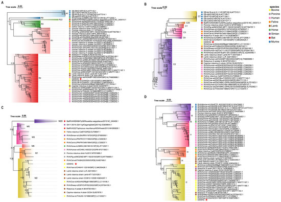 The following supporting information can be downloaded at https://www.mdpi.com/article/10.3390/vetsci12080742/s1: Table S1: The sequences of the RV reference strains used in this study were retrieved from the National Center for Biotechnology Information nucleotide database (GenBank).