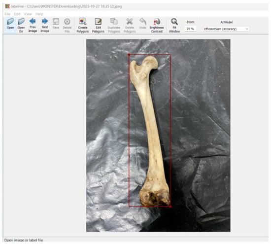The bone images were initially processed using the YOLOv5 algorithm, which automatically detected the relevant regions of interest. For the annotation process, the Labelme platform was utilized (Figure 2), and distinct anatomical features of each bone (e.g., processus hamatus) were manually marked. The annotated data were exported in COCO JSON (Common Objects in Context) format for further use.