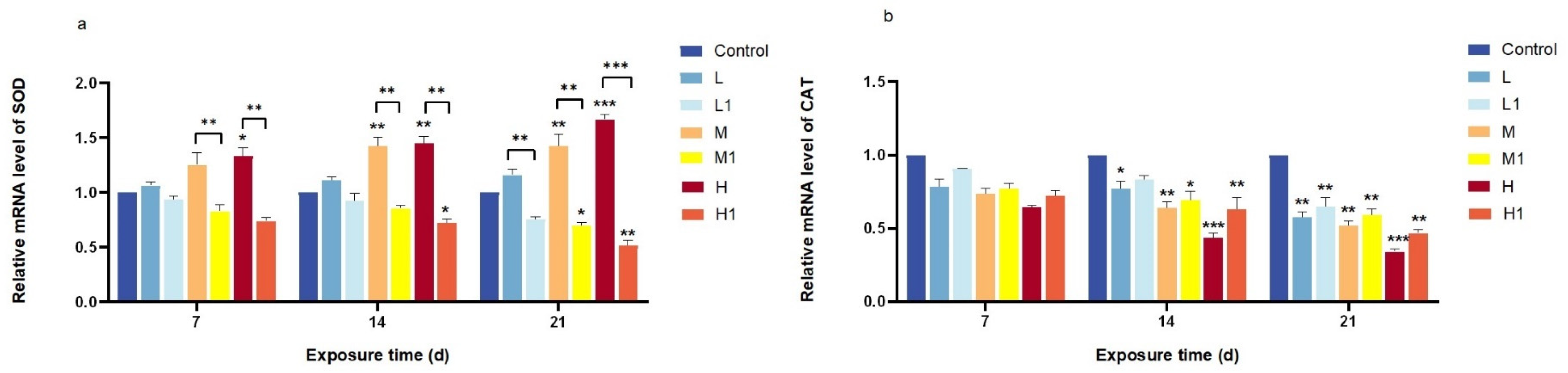 3.2. Relative mRNA Expression of Oxidative Stress-Related Genes
