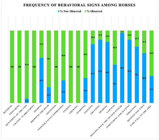 7]. For this reason, in our study, physical contact with the horse was cut off after the application and the behaviors were allowed to be displayed freely, and all behaviors observed during this time were recorded.