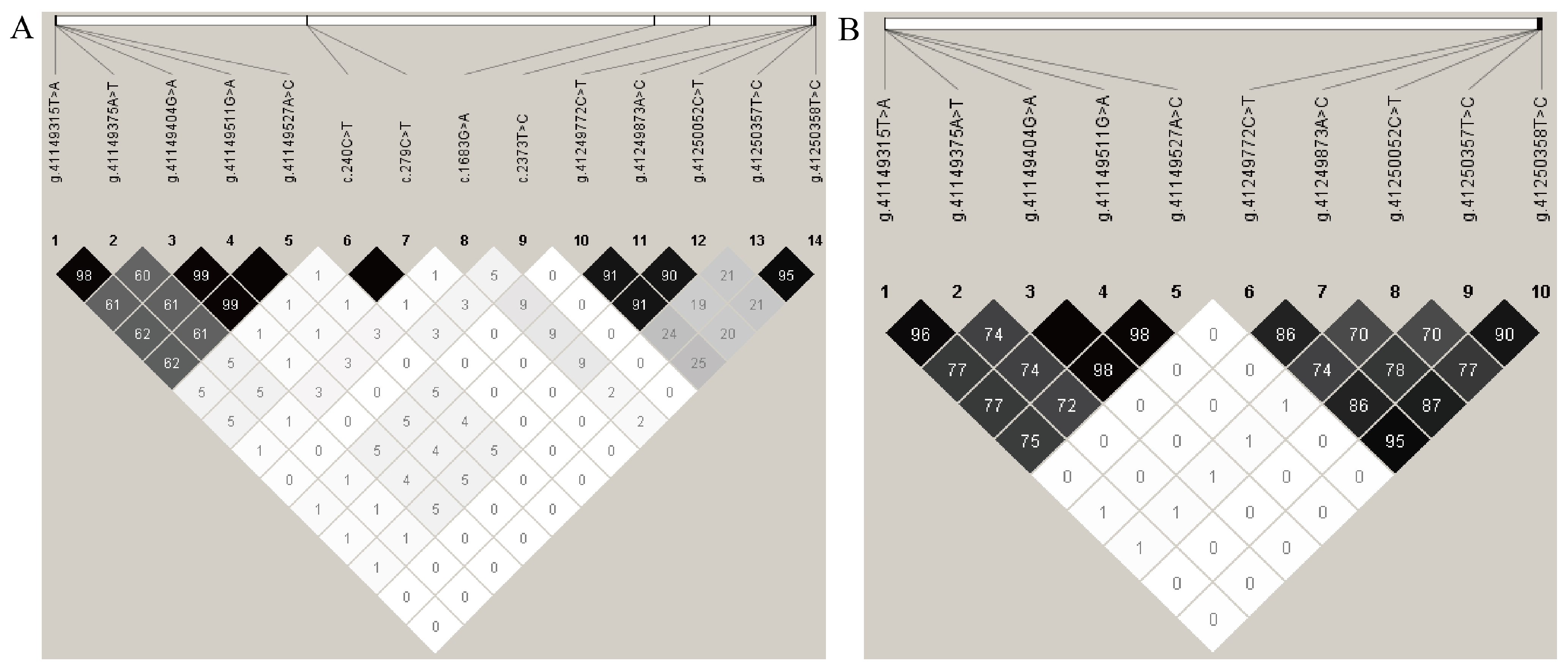 3.3. Linkage Disequilibrium Analysis of Mutations in the LEPR Gene