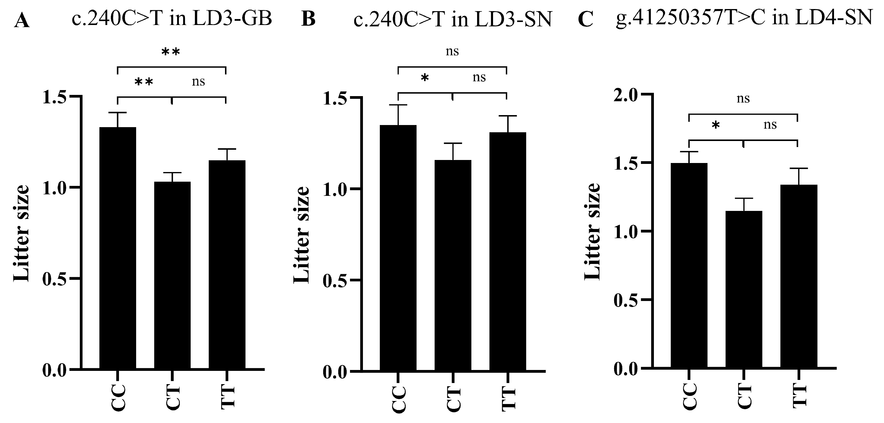 3.4. Associations Between SNPs and Litter Size