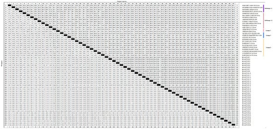 Homology analysis of the ORF5 gene of the obtained PRRSV strains with reference sequences from both domestic and international sources revealed that the nucleotide homology among the three PRRSV-1 strains ranged from 99.7% to 100%, with 100% amino acid homology. However, their nucleotide homology with representative strains such as Lelystad virus, EuroPRRSV, CN/FJFQ-1/2023, NMEU09-1, and LNEU12 was only 82.8% to 88.0%, with amino acid homology ranging from 82.2% to 89.1% (Figure 5 and Figure 6). Among the 35 PRRSV-2 strains, the nucleotide homology ranged from 83.7% to 100%, with amino acid homology from 84.6% to 100%. When compared with 26 representative strains, including ATCC-VR2332, NADC30, CH-1a, GM2, JXA1, and IA/2014/NADC34, the nucleotide homology ranged from 81.8% to 98.3%, with amino acid homology from 81.1% to 97.5% (Figure 7 and Figure 8). These results indicate a high degree of genetic diversity in the PRRSV ORF5 gene in southern Xinjiang.