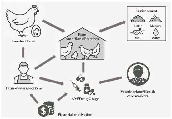 Farkas Z, Strang O, Zentai A, Csorba S, Farkas M, Bittsánszky A, Tóth A, Süth M, Jóźwiak Á. Scoping Review of Factors Affecting Antimicrobial Use and the Spread of Antimicrobial Resistance in the Poultry Production Chain. Veterinary Sciences. 2025; 12(9):881. https://doi.org/10.3390/vetsci12090881