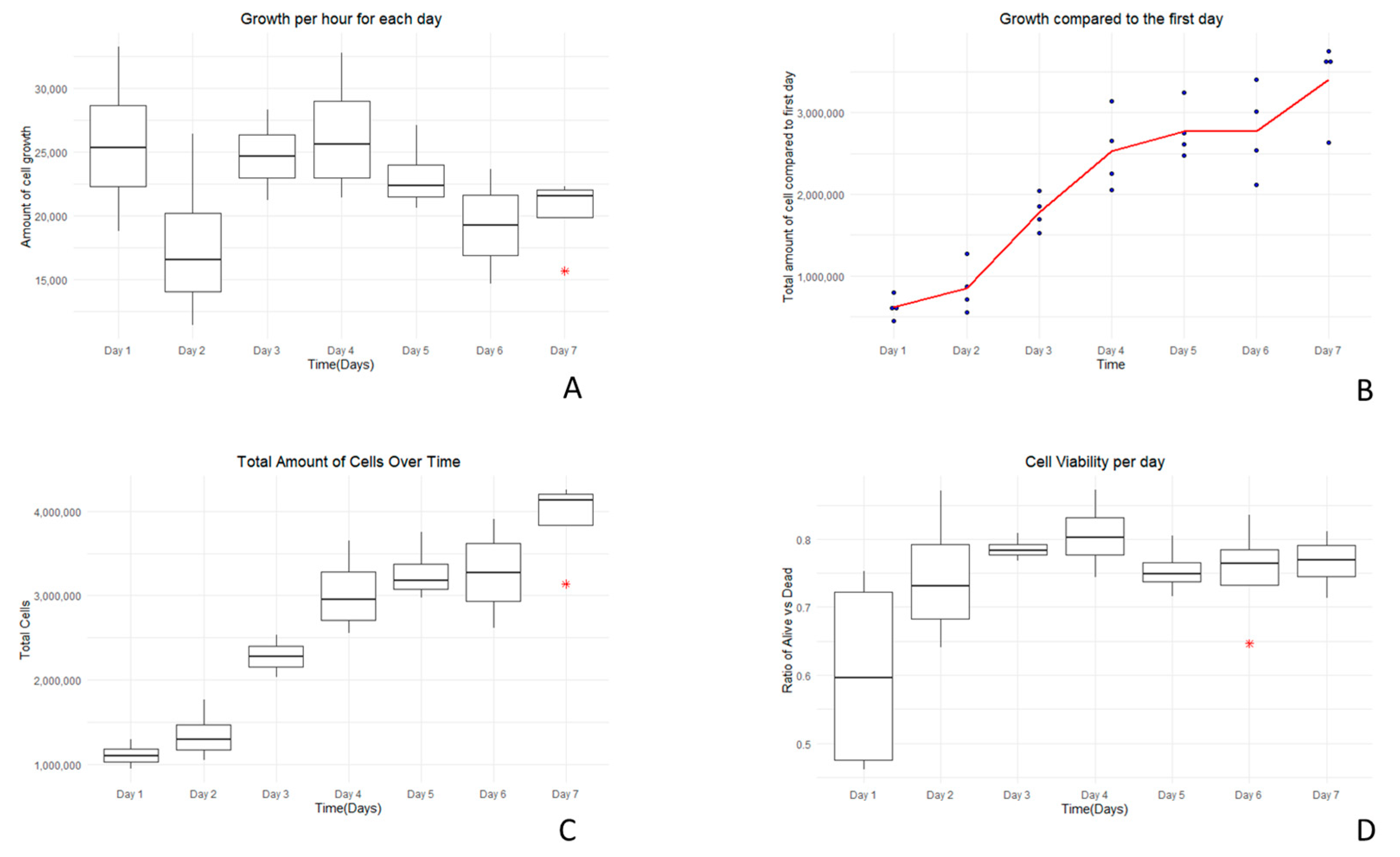 Number of Days | Average Amount of Cells | Average Amount of Dead Cells | Average Amount of Live Cells | Average Amount of Total Cells |