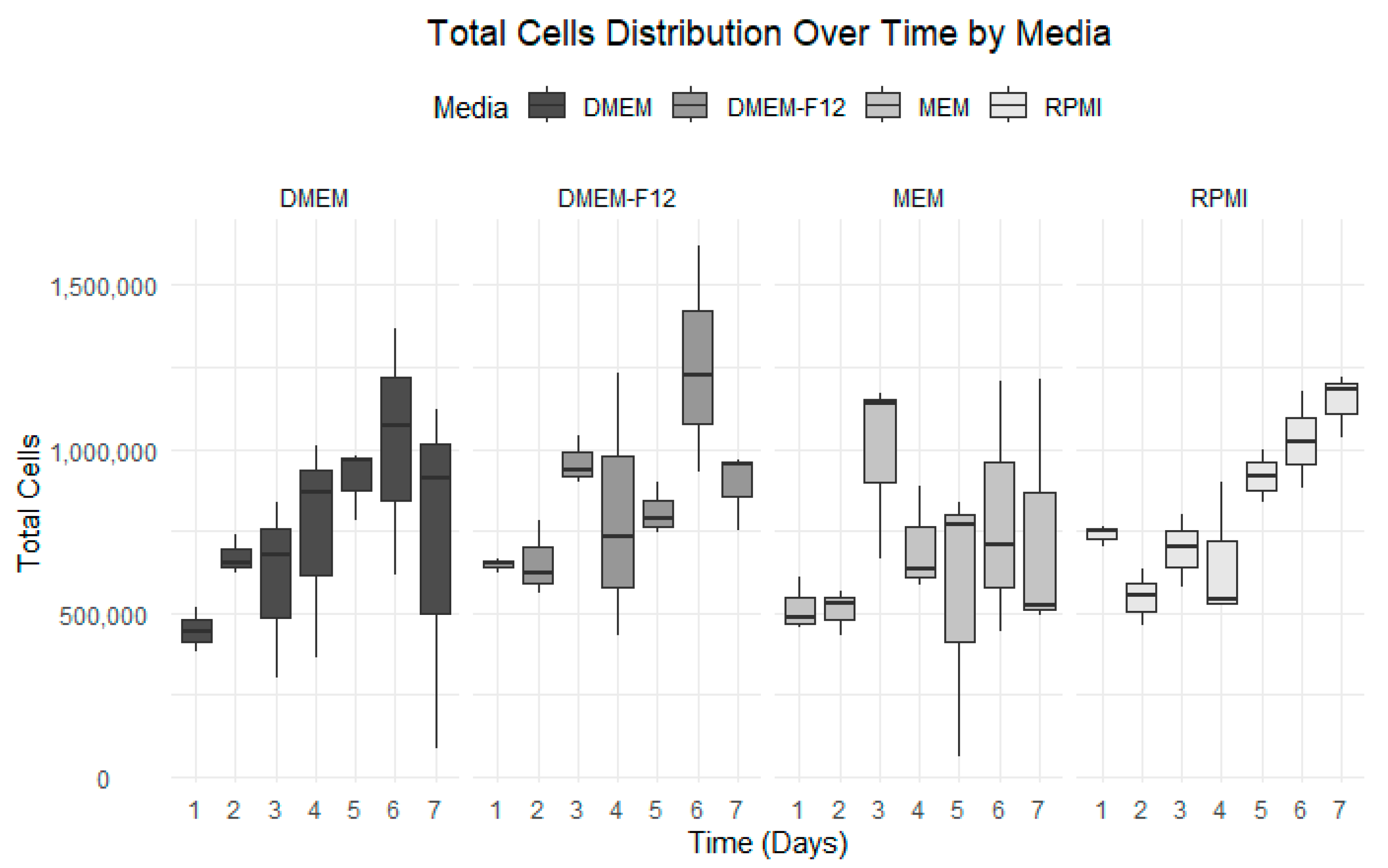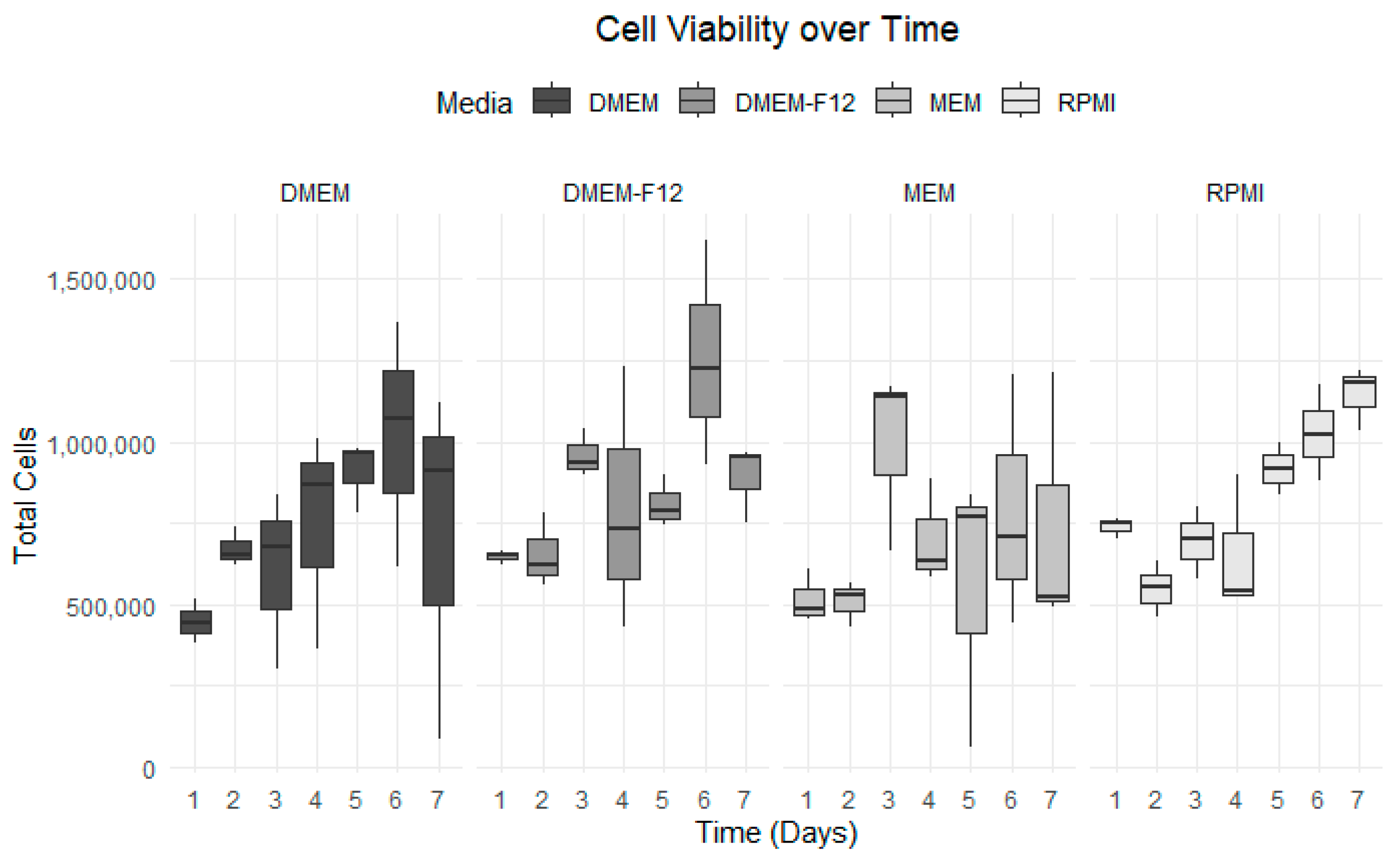 Number of Days | DMEM | DMEM-F12 | MEM | RPMI |
