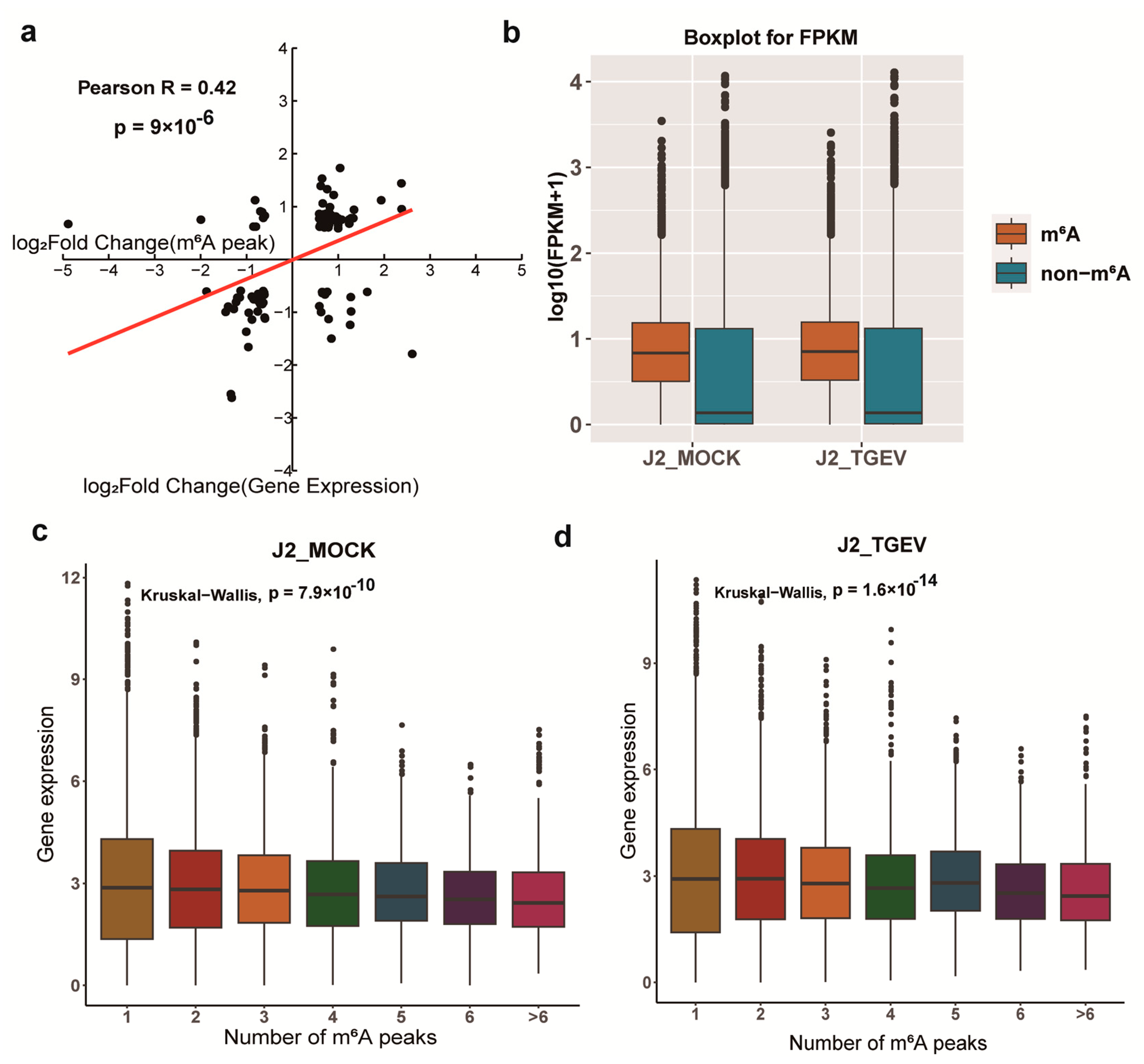 3.2. Transcriptome-Wide Characterization of m6A Modification Dynamics upon TGEV Infection