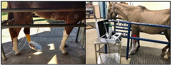 Ozone was generated using a Medozon Compact normobaric ozone generator (HERRMANN Apparatebau GMBH, Elsenfeld, Germany) capable of producing concentrations between 2 and 80 μg/mL. All treatments were performed using the bagging technique, following the 2020 Madrid Declaration [10] and WFOT [15] recommendations. Horses remained hospitalized for the duration of the treatment protocol. Materials used included the ozone generator, 10 mL syringes, perfusion tubing, ozone-resistant polyethylene bags, 0.4 μm syringe filters, torniquet bands, transparent plastic foil and millimetric paper.