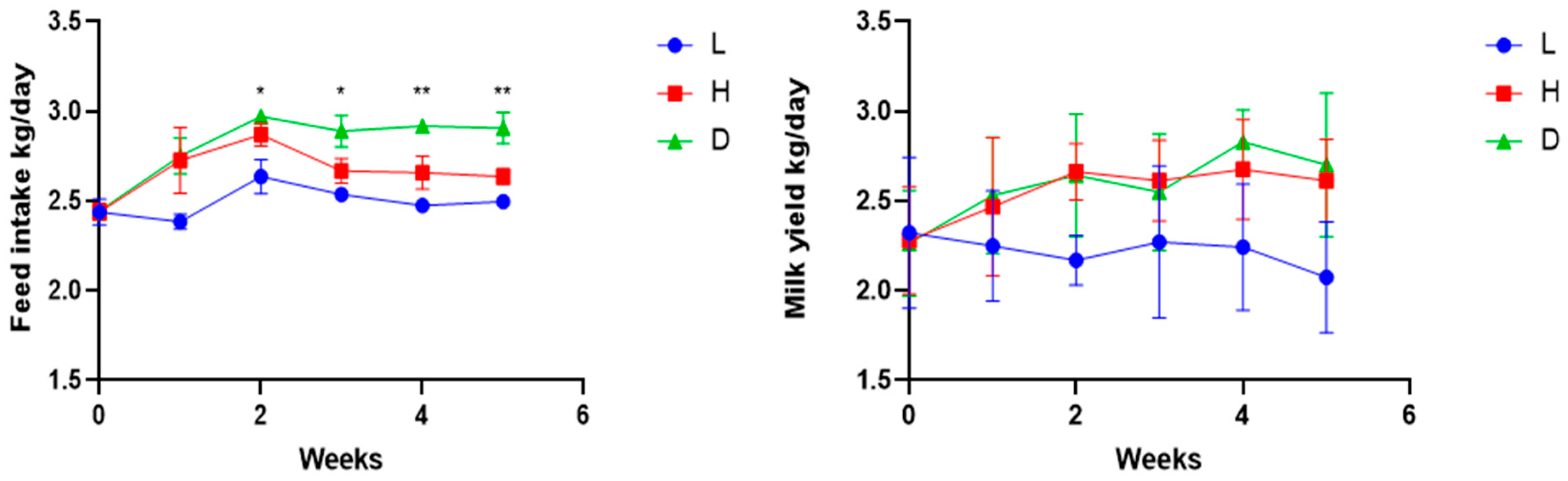 4.1. Influence of Various Feeds on Feed Intake, Milk Yield, and Milk Quality in Dairy Goats
