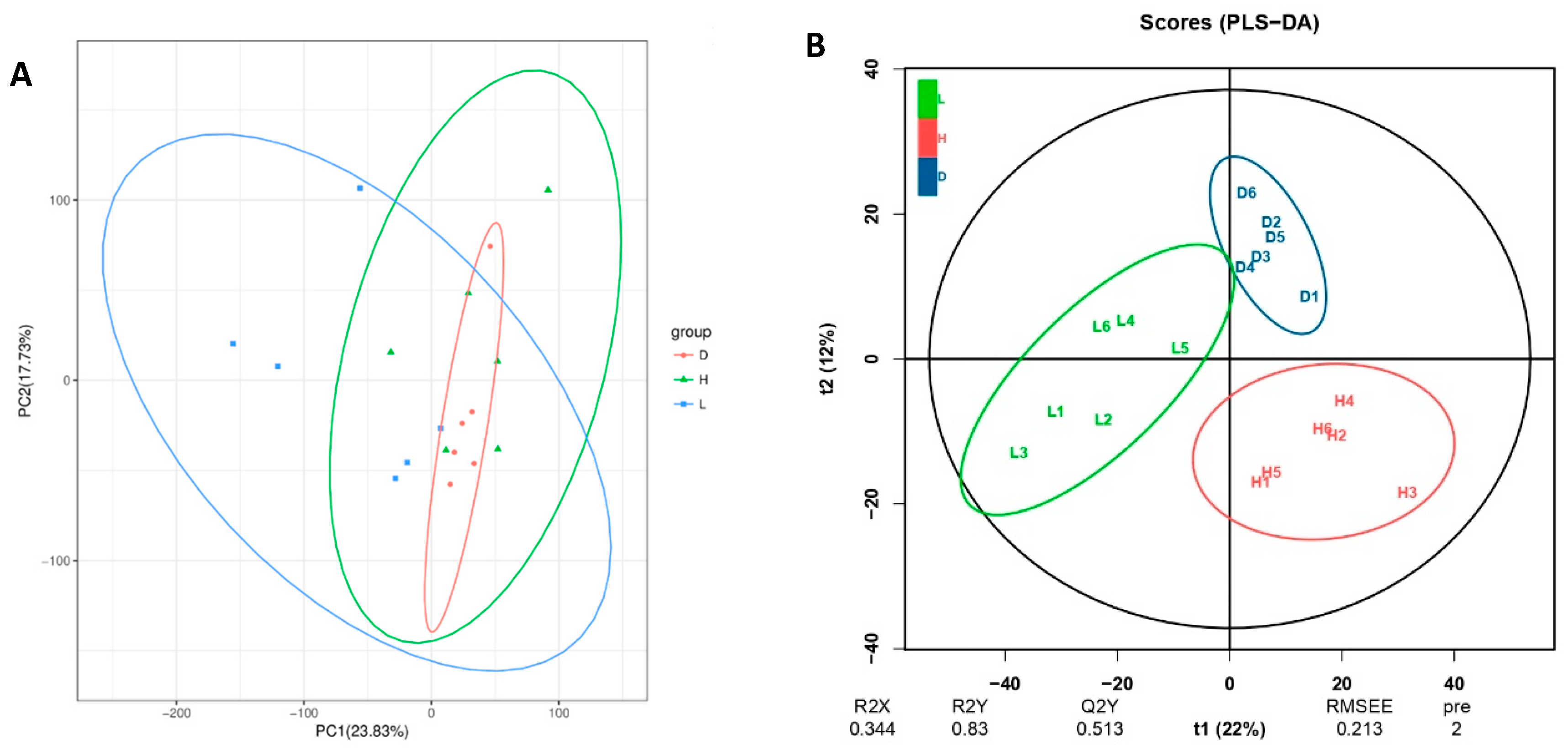 - Zhang, H.; Tong, J.; Zhang, Y.; Xiong, B.; Jiang, L. Metabolomics Reveals Potential Biomarkers in the Rumen Fluid of Dairy Cows with Different Levels of Milk Production. Asian-Australas. J. Anim. Sci. 2020, 33, 79–90. [Google Scholar] [CrossRef]