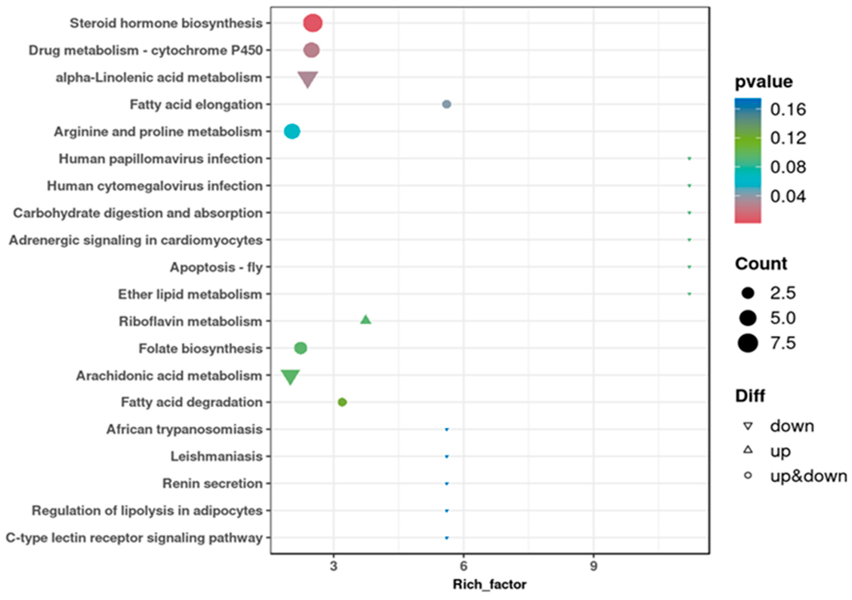 4.7. Differential Metabolite Enrichment Analysis in KEGG Pathways