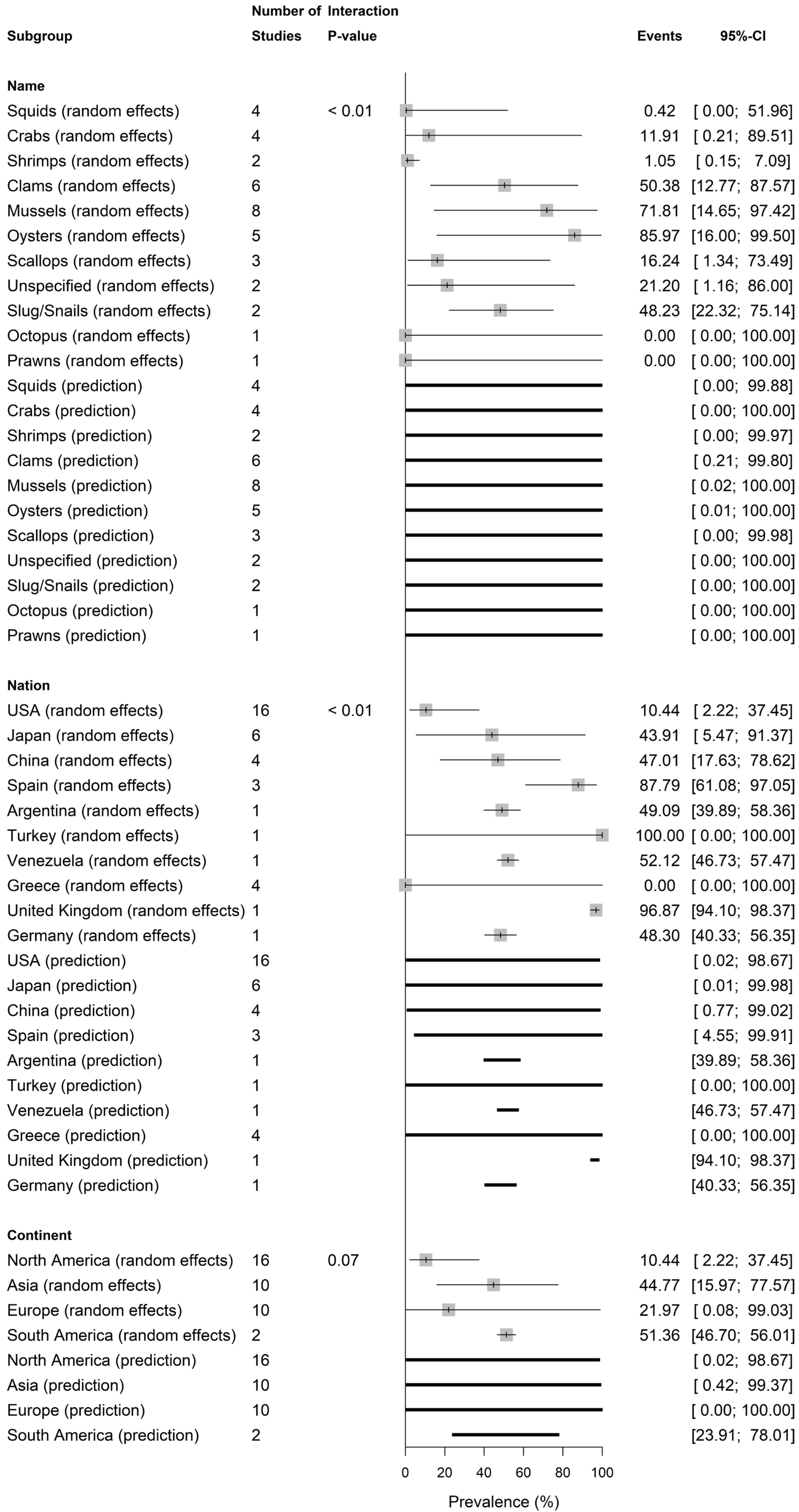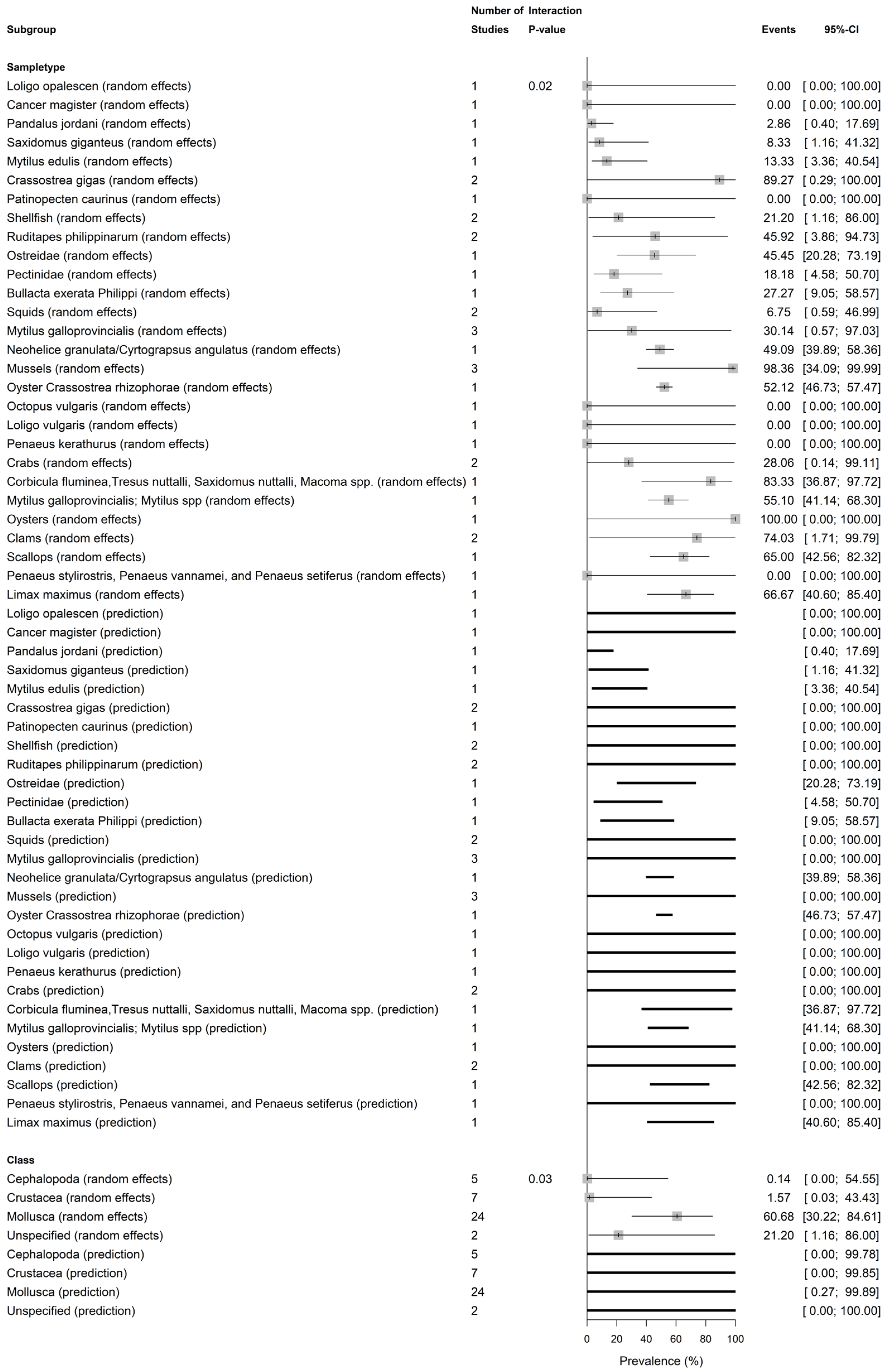 3.4. Shellfish-Borne C. perfringens Prevalence by Shellfish Scientific Name, Common Name, Scientific Class, Nation, and Continent