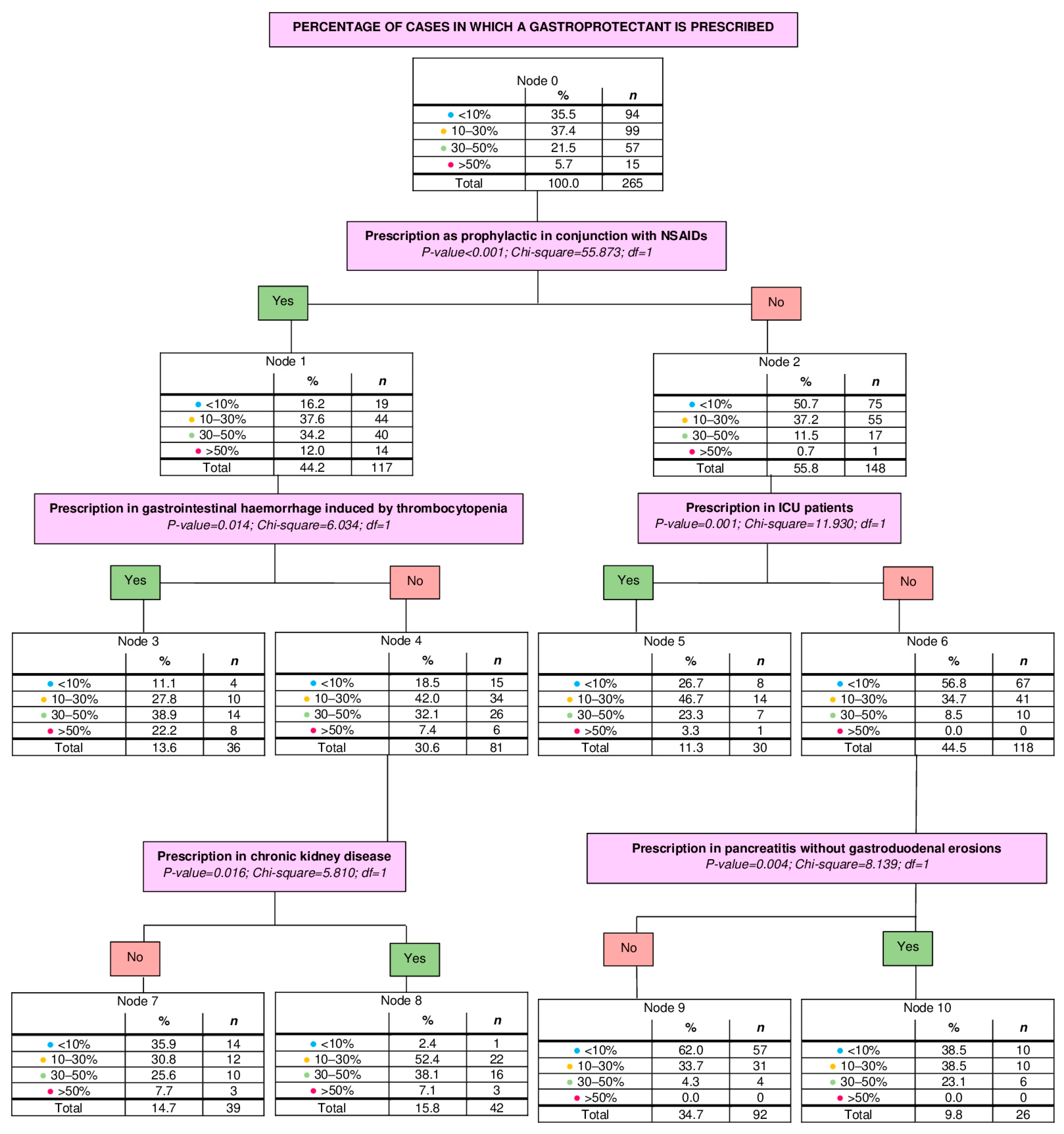 | Prophylaxis with NSAIDs | 53.1 | 57.3 | 34.3 | 0.002 |