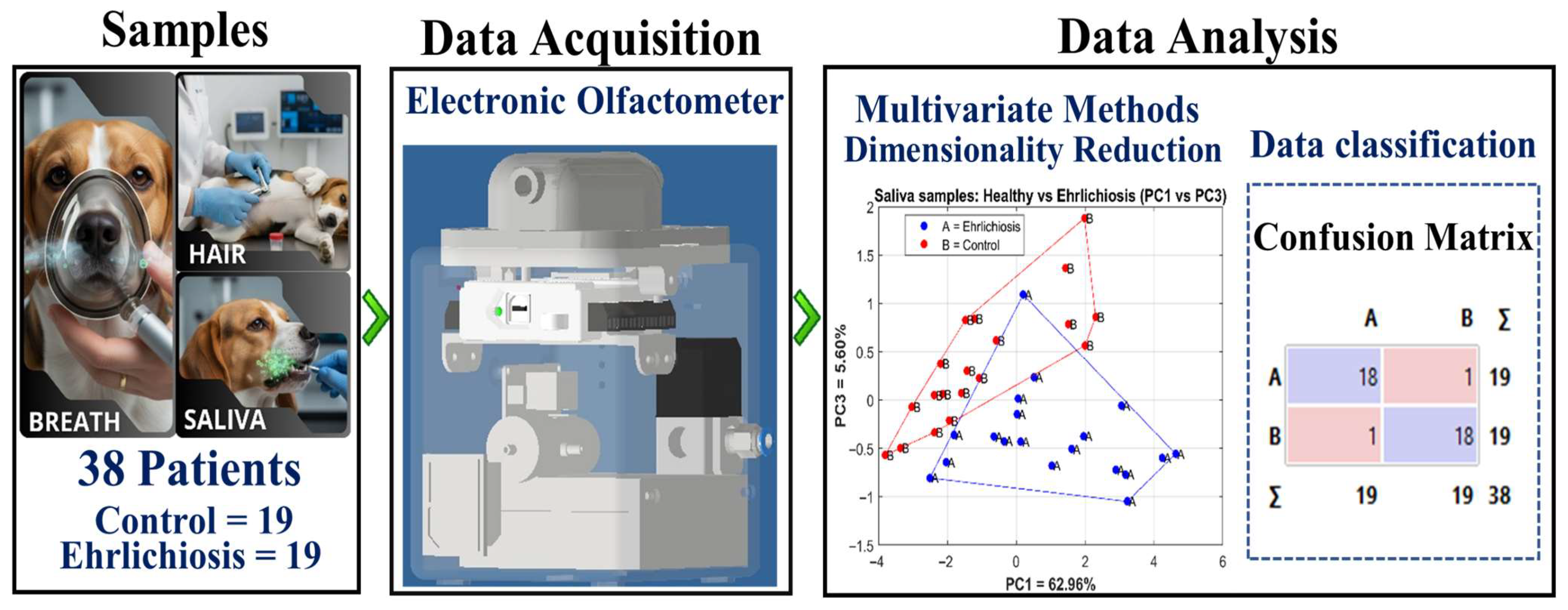 Chicago/Turabian StyleDurán Cotrina, Silvana Valentina, Cristhian Manuel Durán Acevedo, and Jeniffer Katerine Carrillo Gómez. 2026. "Portable Electronic Olfactometer for Non-Invasive Screening of Canine Ehrlichiosis: A Proof-of-Concept Study Using Machine Learning" Veterinary Sciences 13, no. 1: 88. https://doi.org/10.3390/vetsci13010088