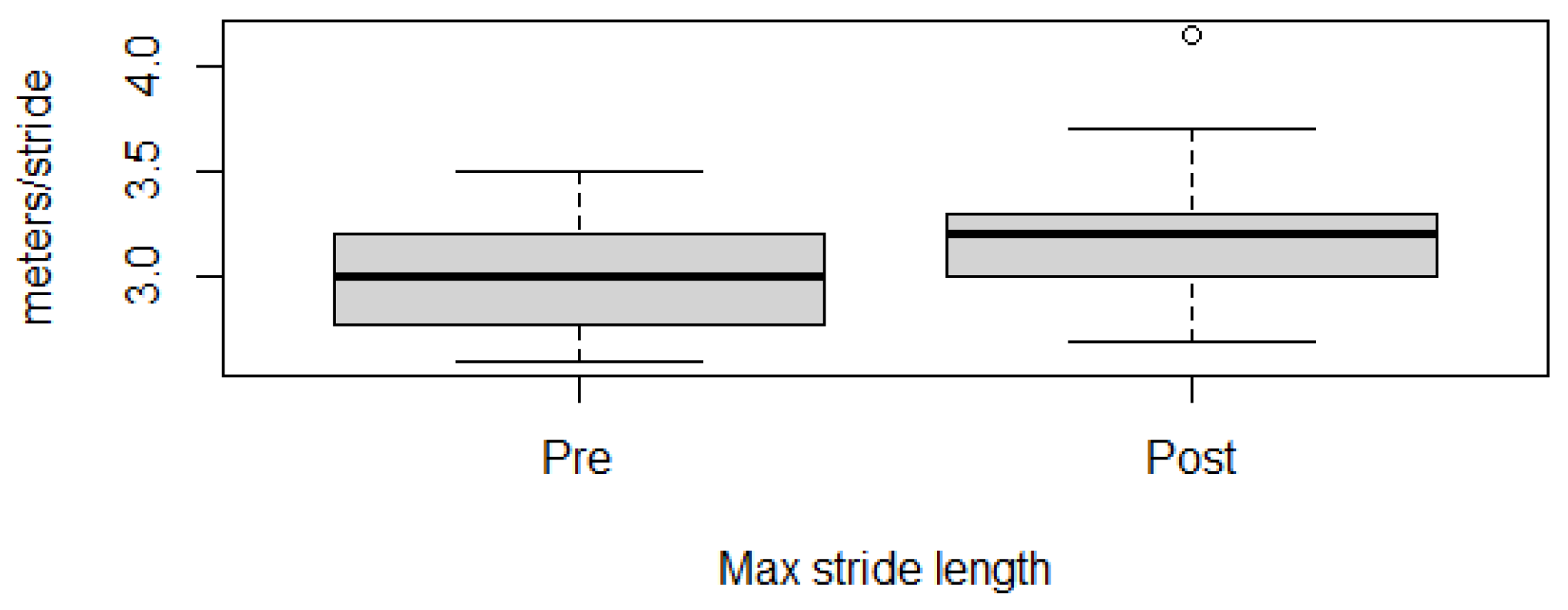 - Wickler, S.J.; Greene, H.M.; Egan, K.; Astudillo, A.; Dutto, D.J.; Hoyt, D.F. Stride Parameters and Hindlimb Length in Horses Fatigued on a Treadmill and at an Endurance Ride. Equine Vet. J. Suppl. 2006, 38, 60–64. [Google Scholar] [CrossRef] [PubMed]