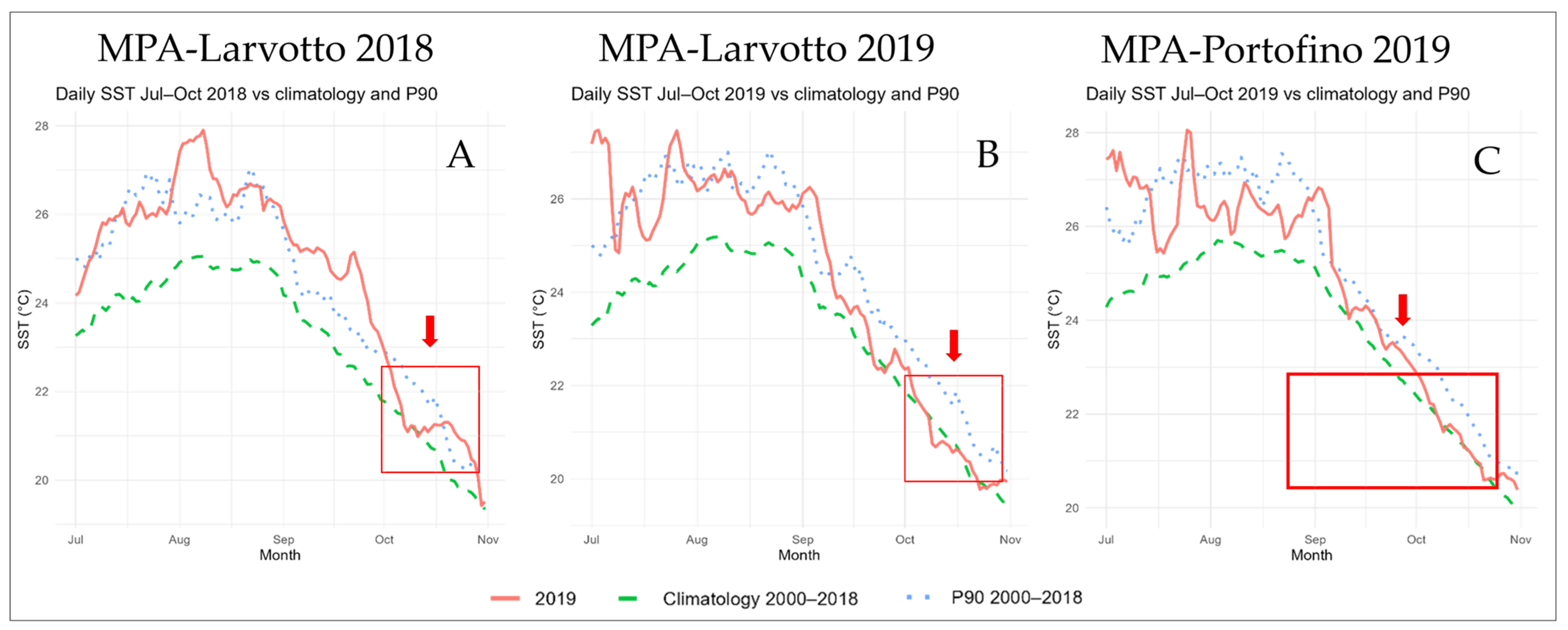 - Kersting, D.K.; García-Quintanilla, C.; Quintano, N.; Estensoro, I.; Ortega-Villaizan, M.D.M. Dusky Grouper Massive Die-off in a Mediterranean Marine Reserve. Mediterr. Mar. Sci. 2024, 25, 578–585. [Google Scholar] [CrossRef]