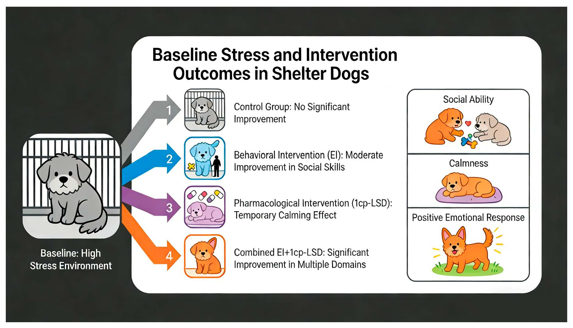 Hernández-Álvarez, E.; Canino-Quijada, C.; Roiz, S.; Luzardo, O.P.; Henríquez-Hernández, L.A. Evaluation of 1cp-LSD for Enhancing Welfare in Shelter Dogs: A Randomized Blind Trial with Ethological Intervention. Vet. Sci. 2026, 13, 96. https://doi.org/10.3390/vetsci13010096