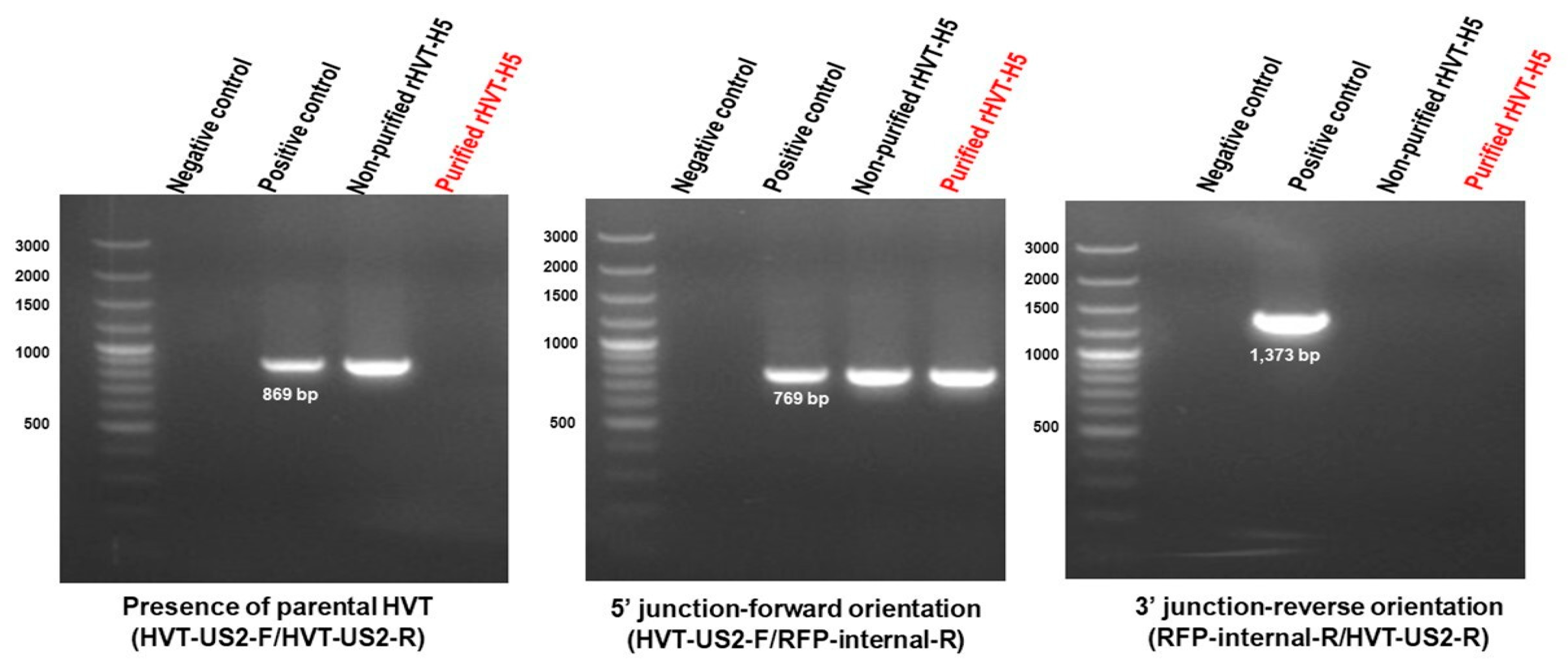 2.6. Genetic Stability of rHVT-H5