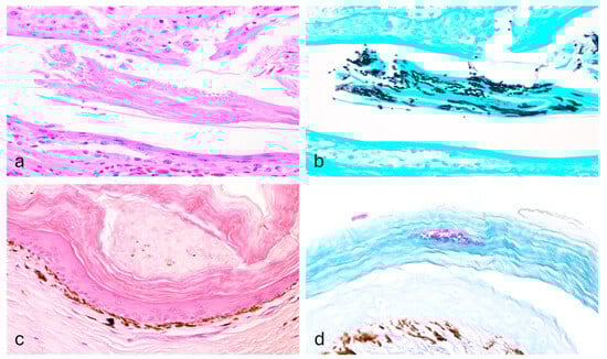 Nannizziomycosis can range from mild to severe skin lesions, extending from crusts to ulcerations and necrosis, and affected individuals can present with lethargy and emaciation [9]. In the present study, N. pluriseptata-infected skinks showed discrete gross lesions. The epidermis is usually the most affected structure in N. barbatae infection—just like these N. pluriseptata cases—but since the skinks submitted for post-mortem examination were euthanized, disease progression could not be assessed.