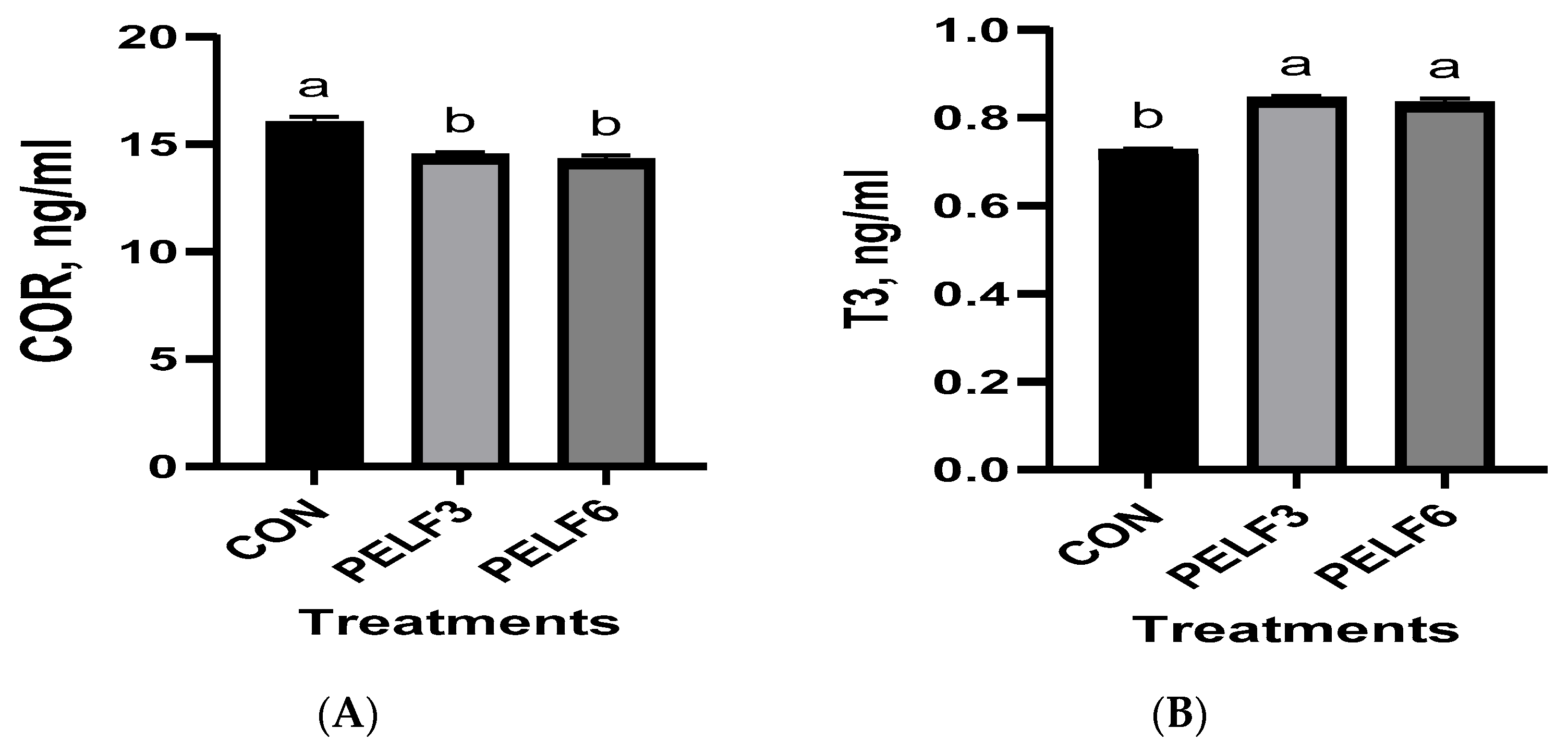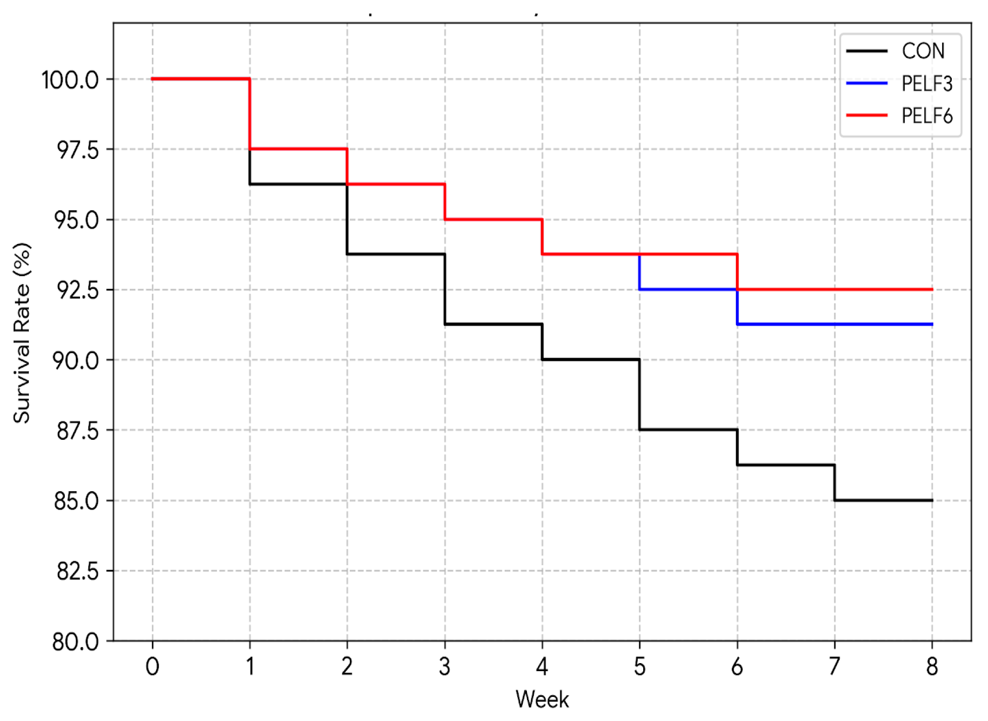 | Parameter | CON | PELF3 | PELF6 | p-Value | |