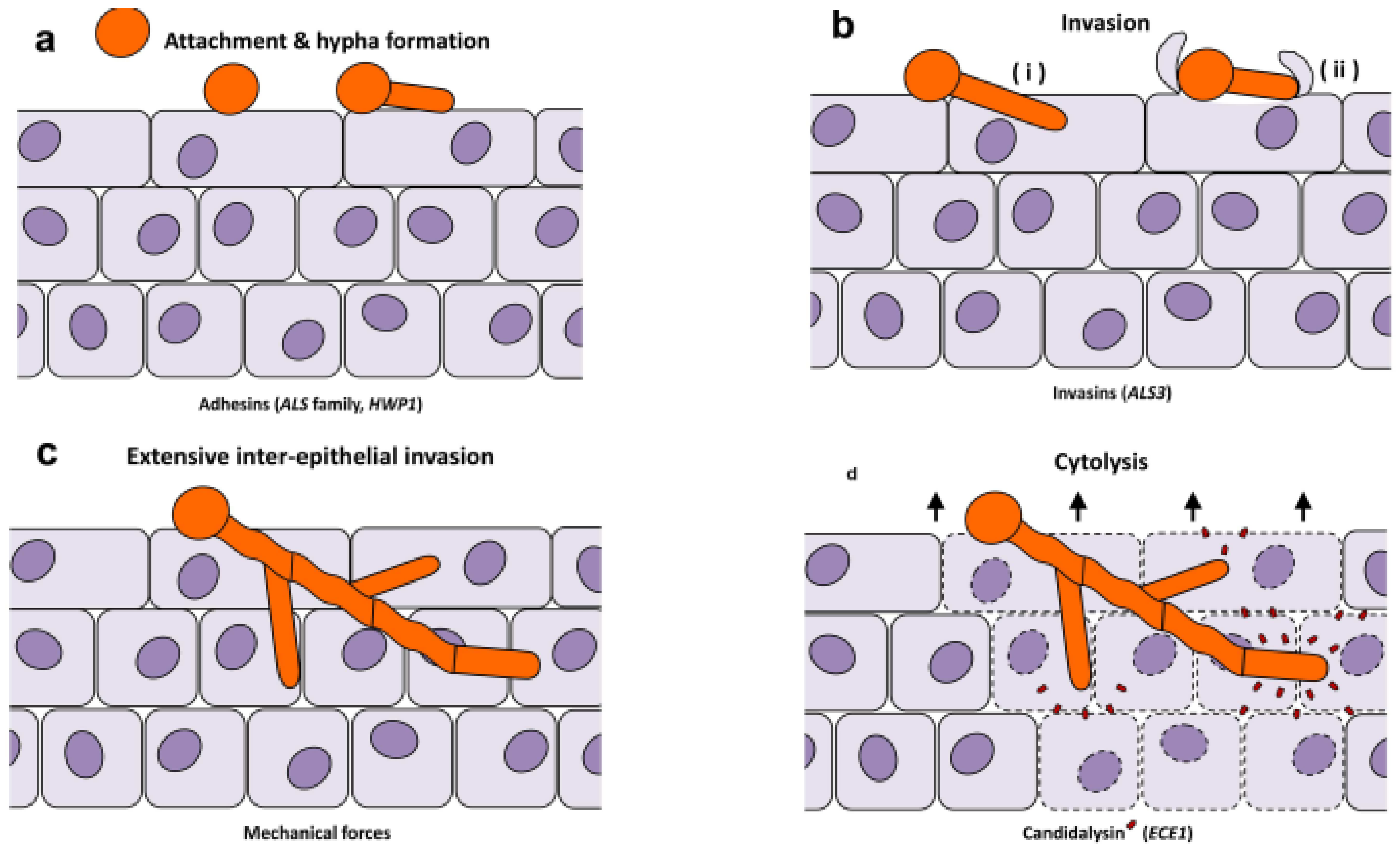 2.3.2. Generation of Morphogenesis, Candidalysin, and Epithelial Injury