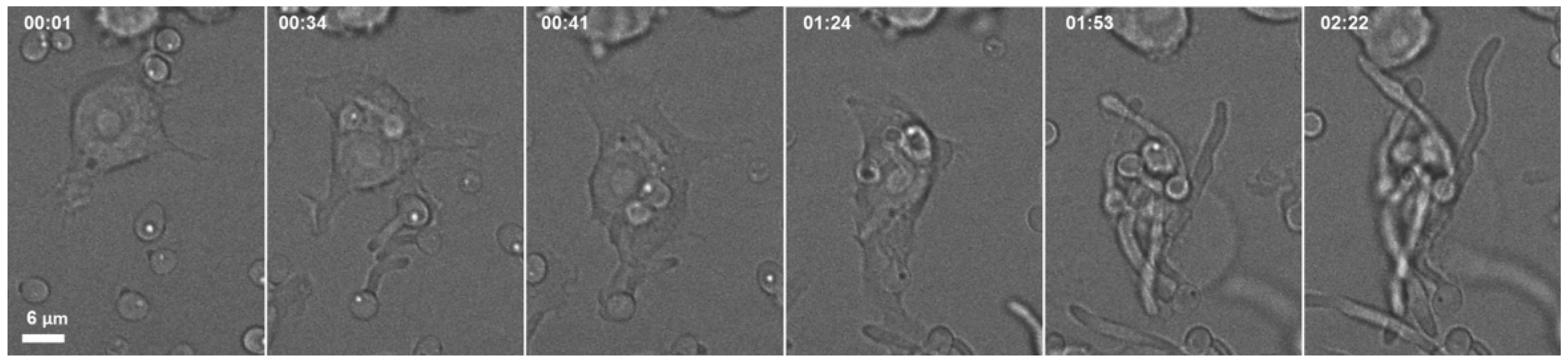 - Mukaremera, L.; Lee, K.K.; Mora-Montes, H.M.; Gow, N.A.R. Candida albicans Yeast, Pseudohyphal, and Hyphal Morphogenesis Differentially Affects Immune Recognition. Front. Immunol. 2017, 8, 629. [Google Scholar] [CrossRef]