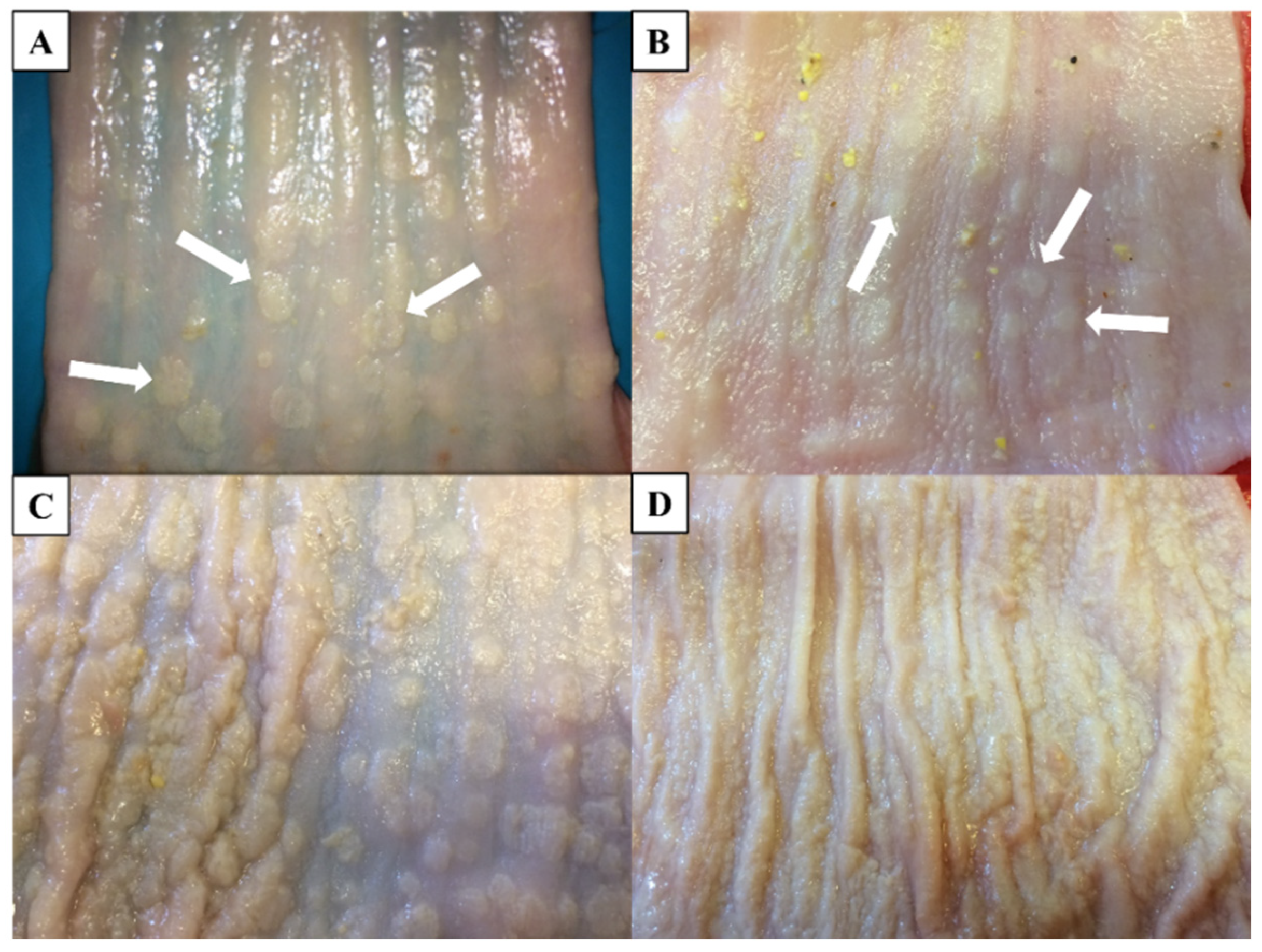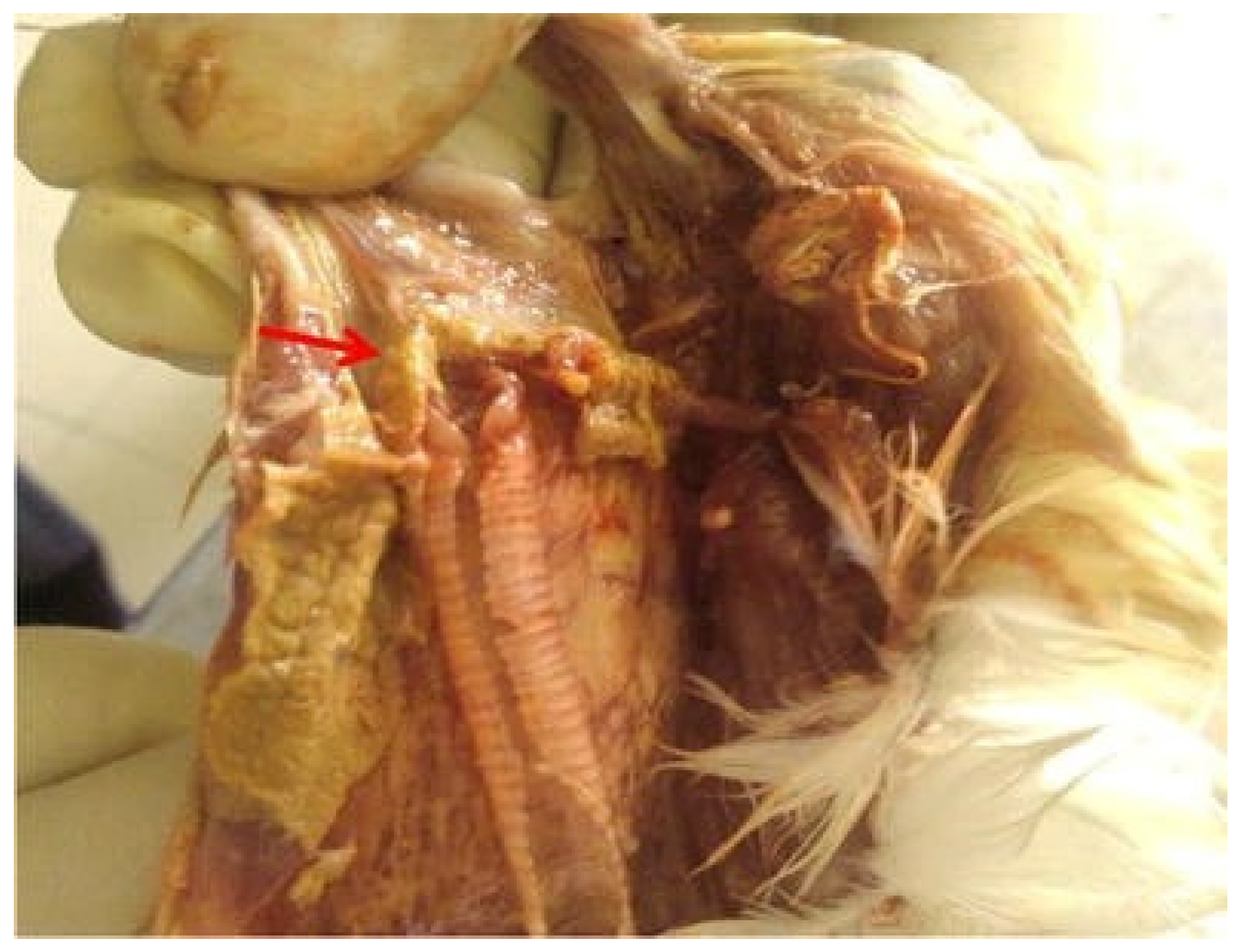 3.1.3. Gastrointestinal Tracts Gross Lesions (Crop, Esophagus, and Proventriculus)