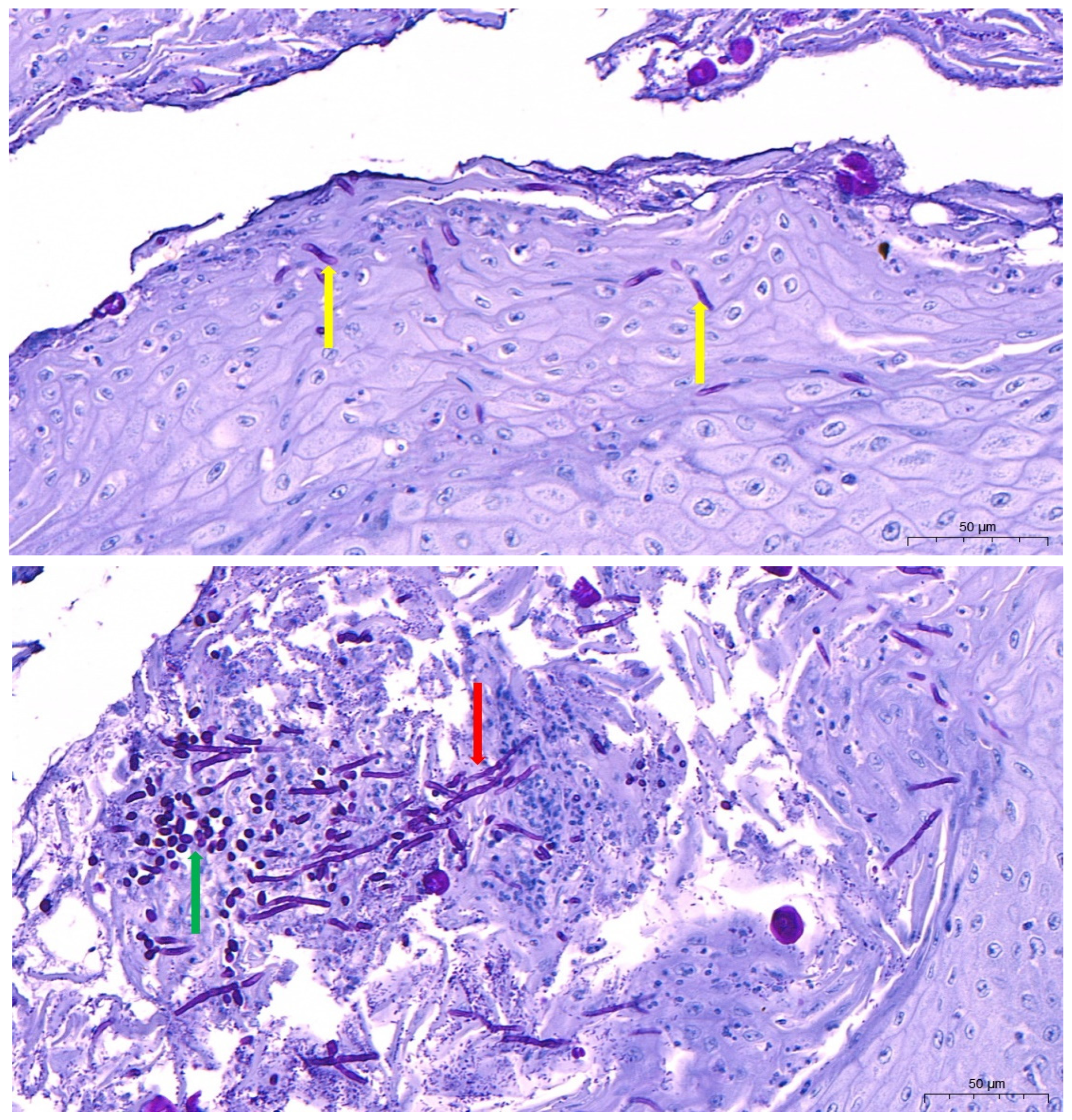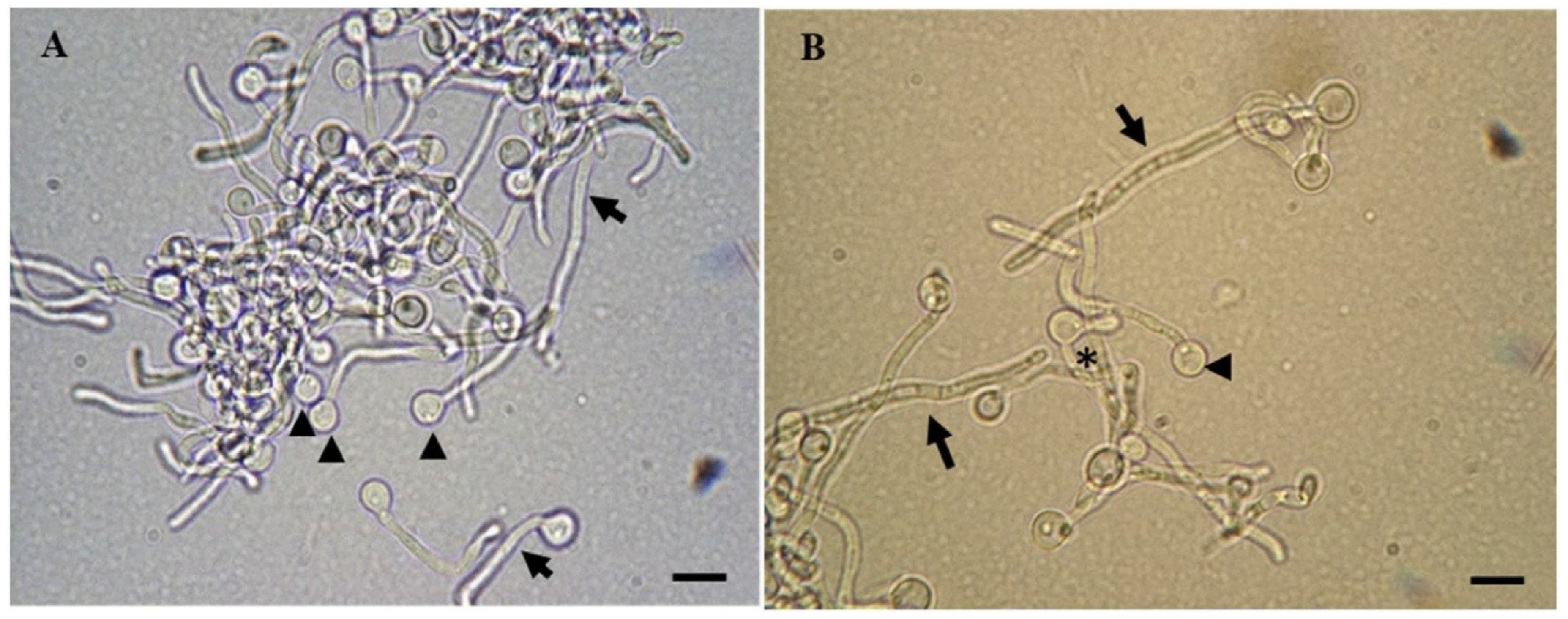 - Singh, D.P.; Kumar Verma, R.; Sarswat, S.; Saraswat, S. Non-Candida albicans Candida species: Virulence factors and species identification in India. Curr. Med. Mycol. 2021, 7, 8–13. [Google Scholar] [CrossRef]