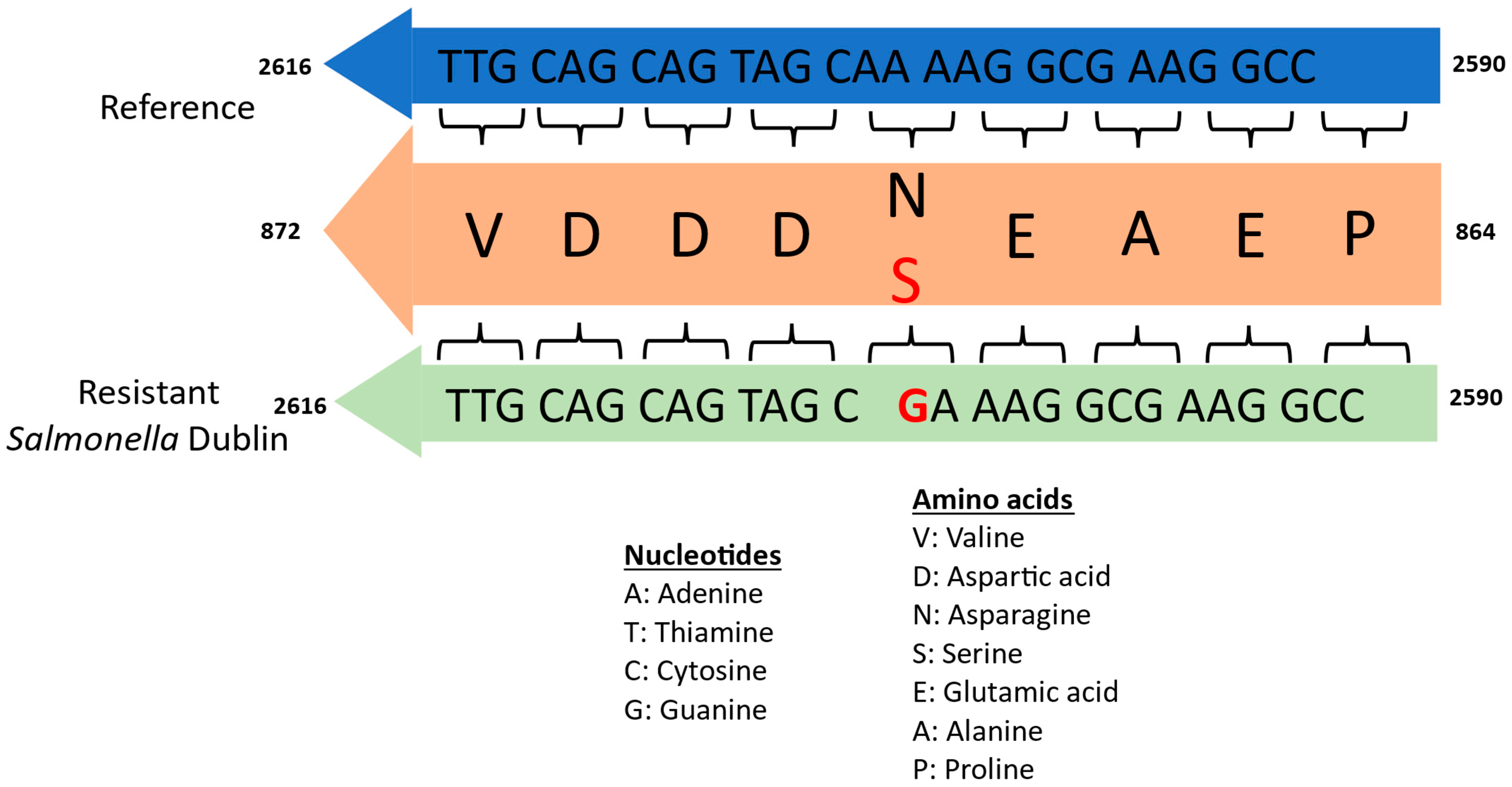 - Fritz, H.M.; Pereira, R.V.; Toohey-Kurth, K.; Marshall, E.; Tucker, J.; Clothier, K.A. Salmonella enterica Serovar Dublin from Cattle in California from 1993–2019: Antimicrobial Resistance Trends of Clinical Relevance. Antibiotics 2022, 11, 1110. [Google Scholar] [CrossRef] [PubMed]