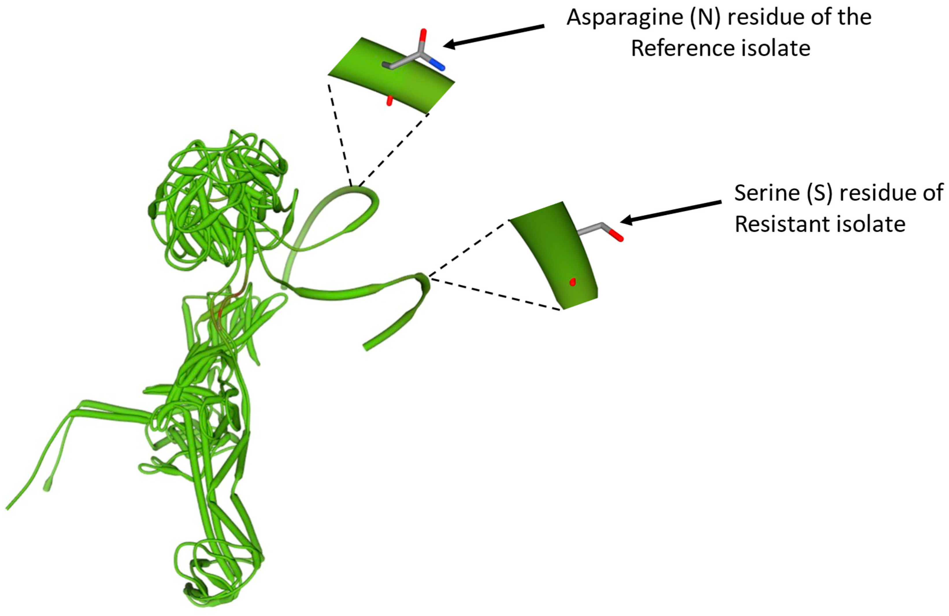 3.3. Chromosomal Mutations Identified in the Isolates