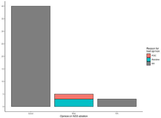 Owner-reported opinion on NSS ablation at long-term follow-up (n = 48). The x-axis indicates the owner-reported opinion categories; the y-axis indicates the number of owner opinions.