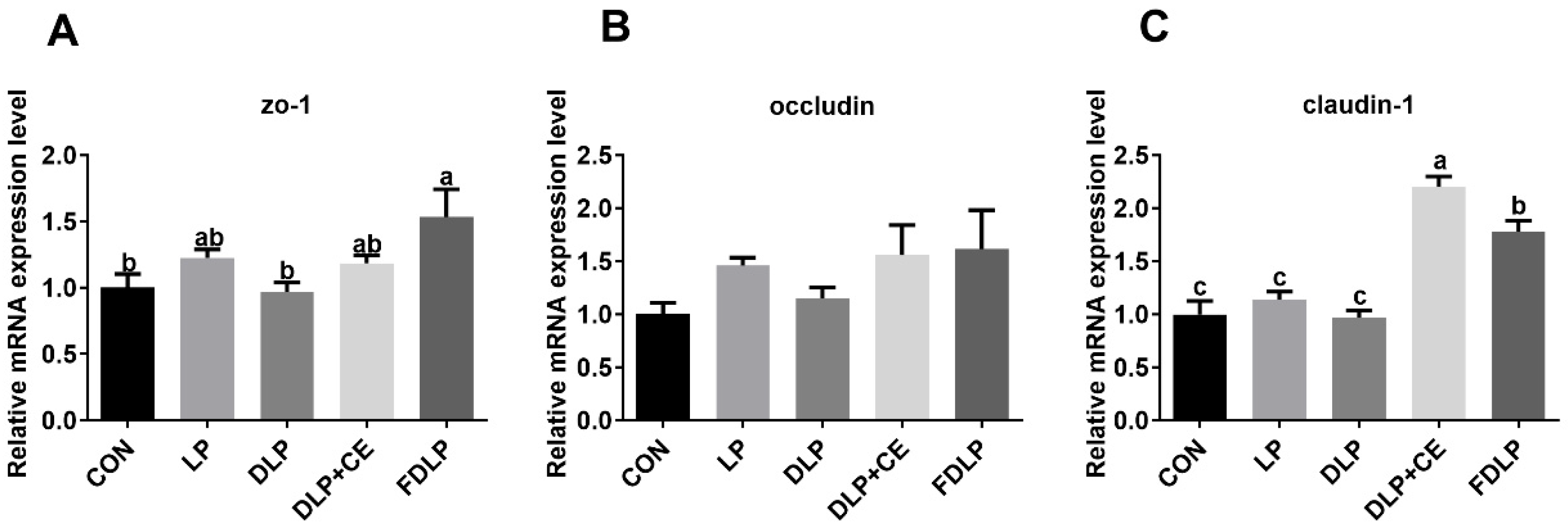 3.9. Gene Expression of Tight Junction Proteins in the Colonic Mucosa