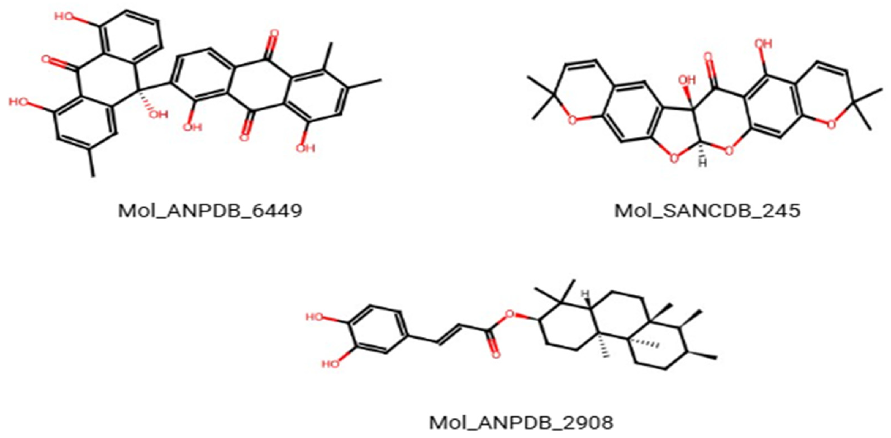 - Ntie-Kang, F.; Telukunta, K.K.; Döring, K.; Simoben, C.V.; Moumbock, A.F.A.; Malange, Y.I.; Njume, L.E.; Yong, J.N.; Sippl, W.; Günther, S. NANPDB: A Resource for Natural Products from Northern African Sources. J. Nat. Prod. 2017, 80, 2067–2076. [Google Scholar] [CrossRef] [PubMed]