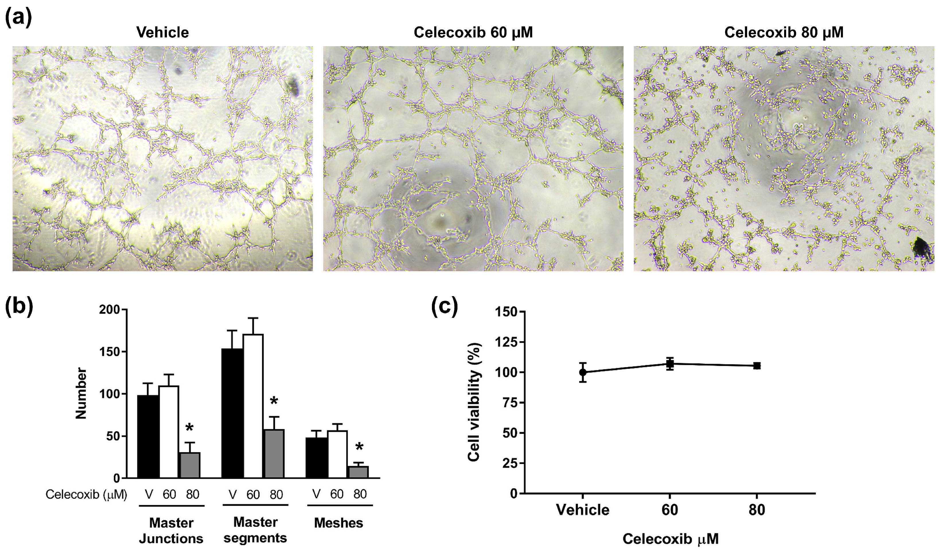 3.4. Celecoxib Inhibits Vasculogenic Mimicry Formation in D17 Cells