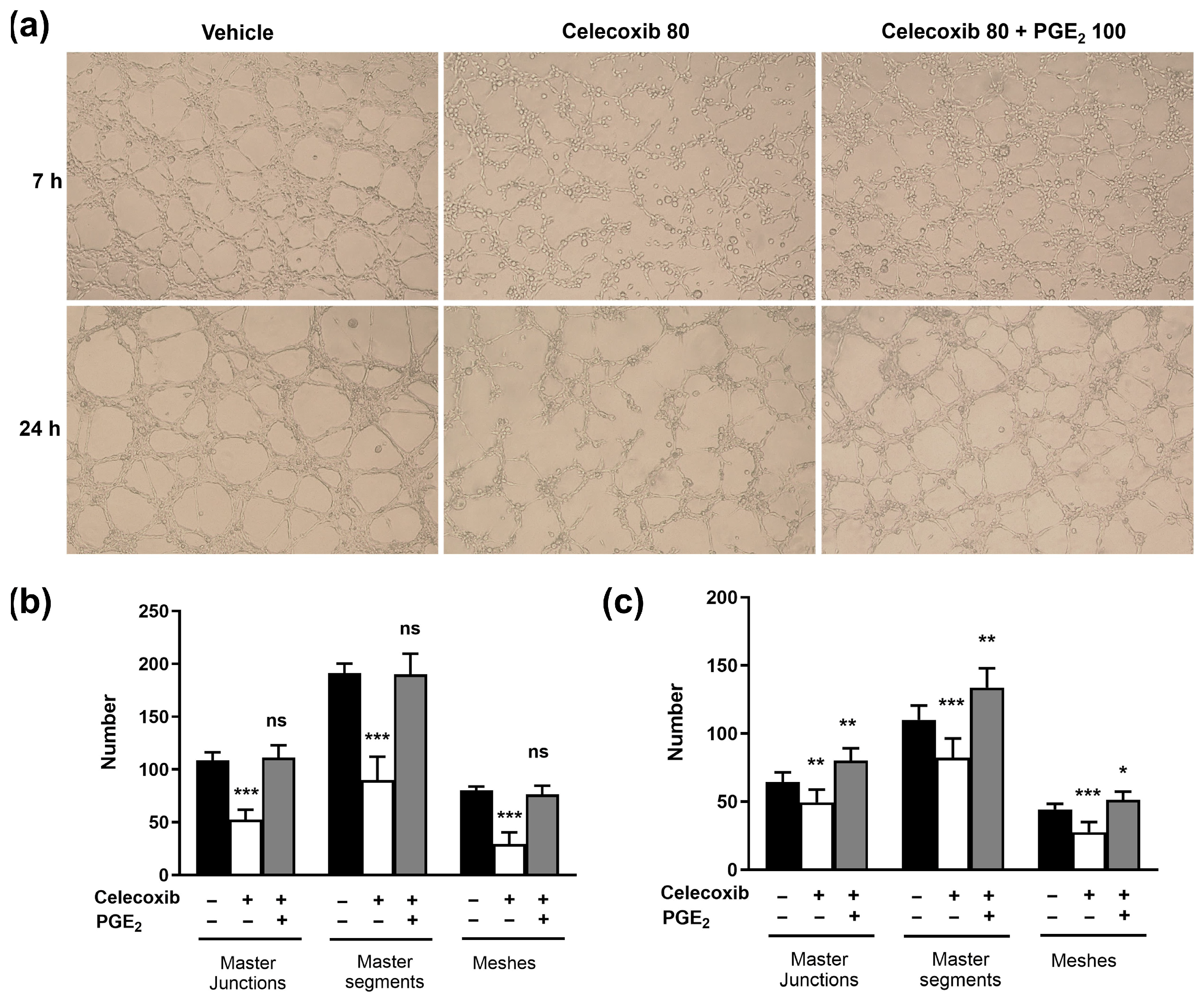 3.7. Exogenous PGE2 Restores Celecoxib-Inhibited VM Formation