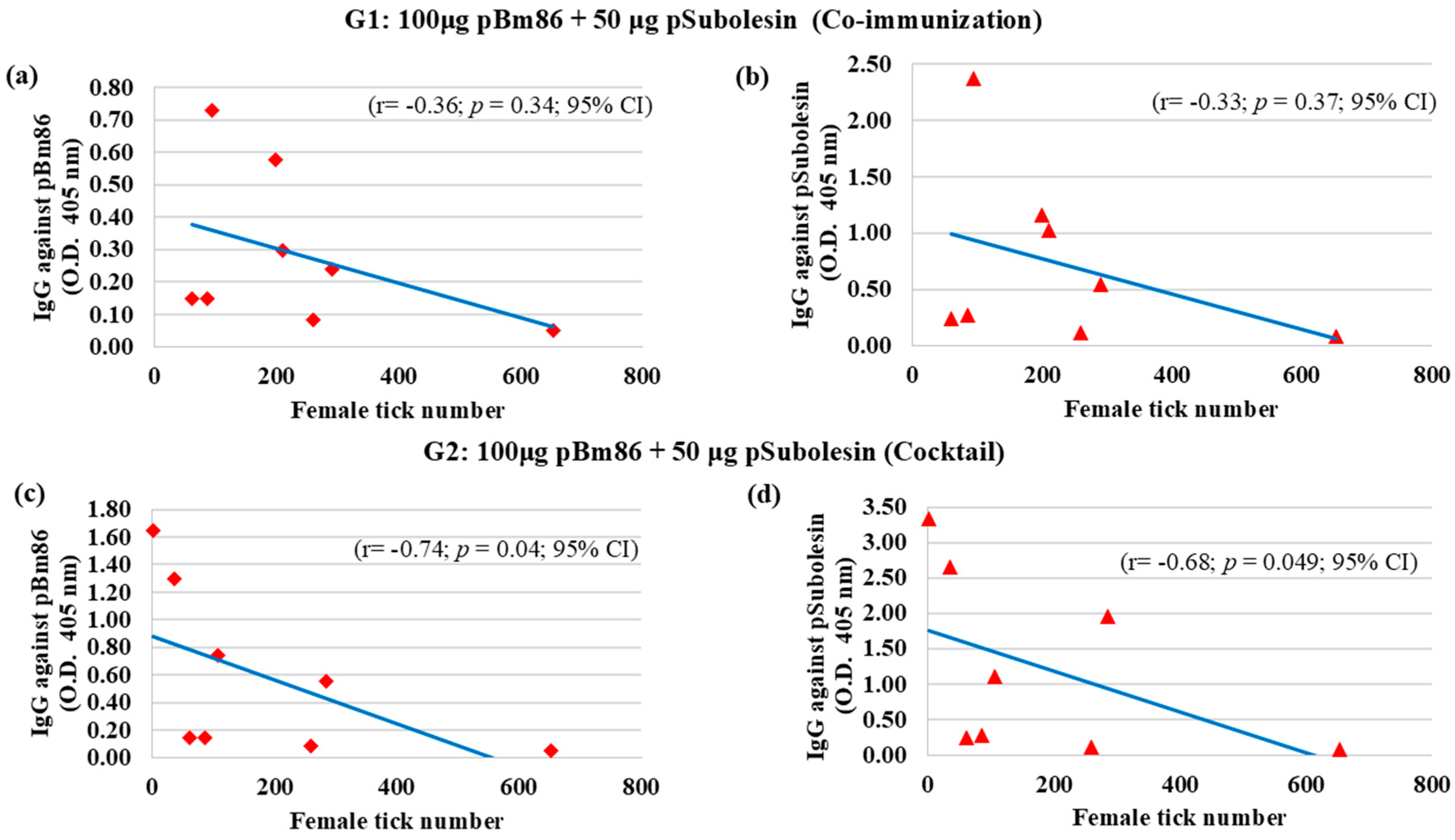 3.5. Effect of Anti-pBm86 and Anti-pSubolesin Antibodies on Tick Weight and Oviposition In Vitro