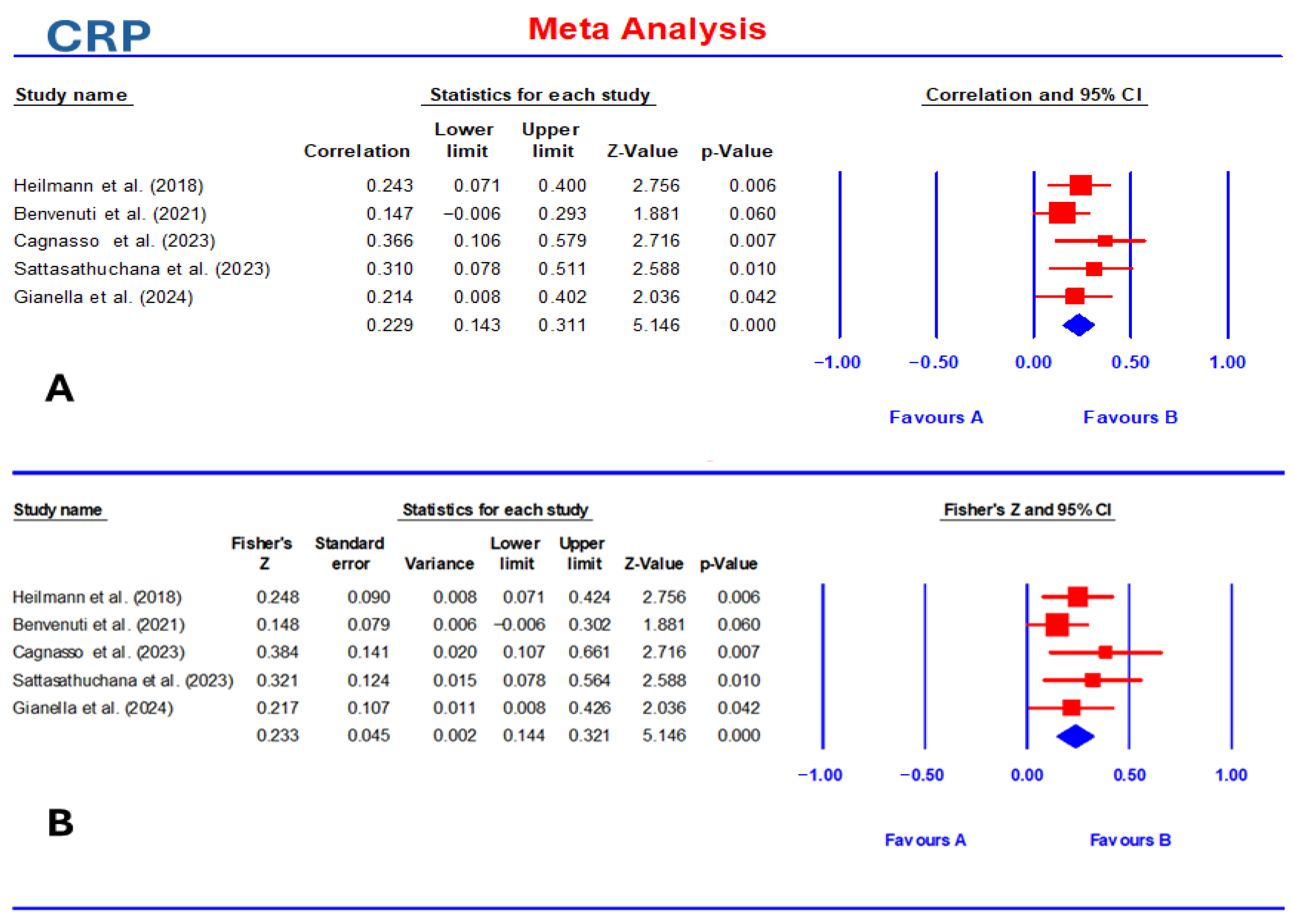 | Correlation (pooled effect size) | 0.229 | <0.001 | 0.14–0.31 | 0.41 | <0.001 | 0.28–0.52 | 0.38 | <0.001 | 0.23–0.50 |
