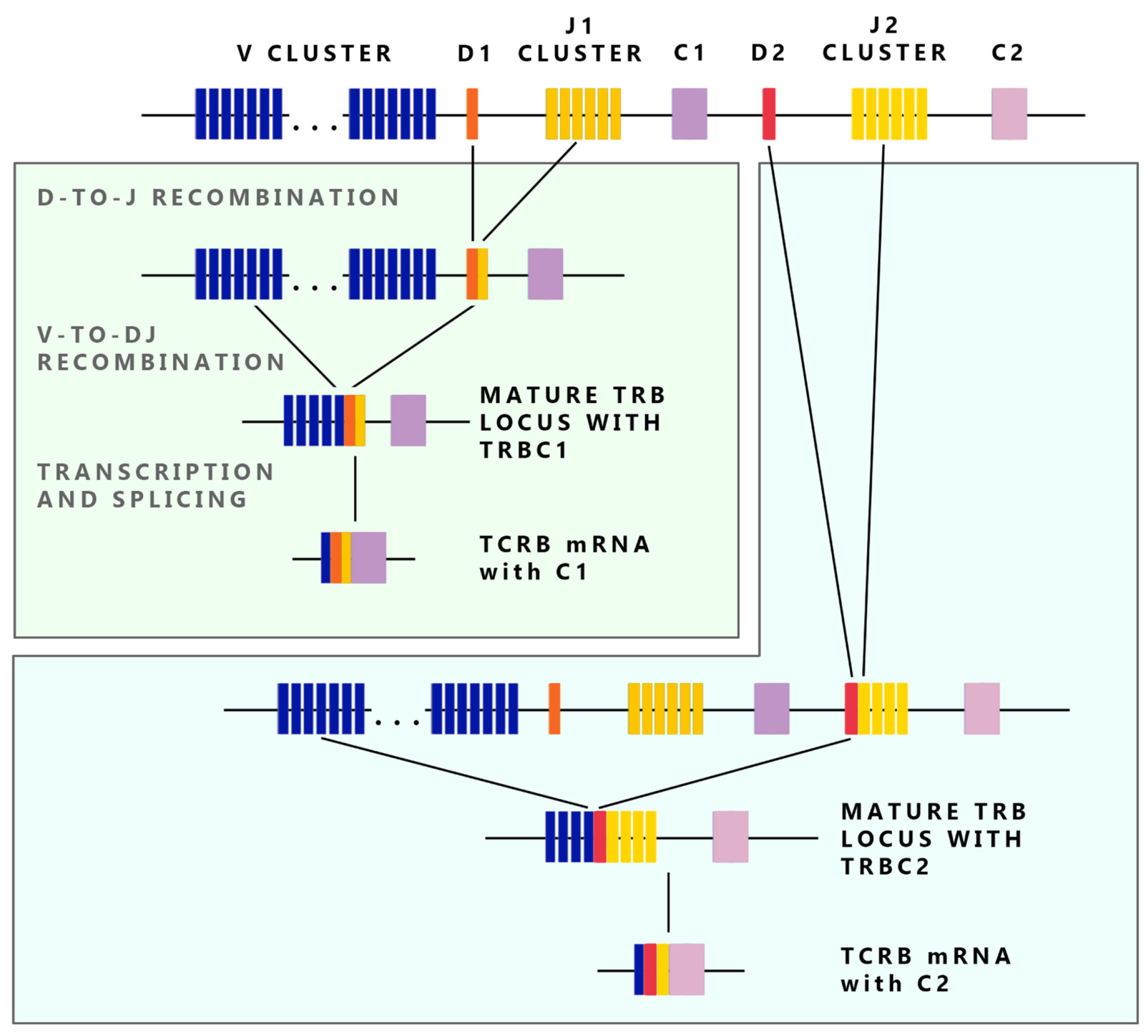 - Pegorier, P.; Bertignac, M.; Chentli, I.; Nguefack Ngoune, V.; Folch, G.; Jabado-Michaloud, J.; Hadi-Saljoqi, S.; Giudicelli, V.; Duroux, P.; Lefranc, M.P.; et al. IMGT(R) Biocuration and Comparative Study of the T Cell Receptor Beta Locus of Veterinary Species Based on Homo sapiens TRB. Front. Immunol. 2020, 11, 821. [Google Scholar] [CrossRef] [PubMed]