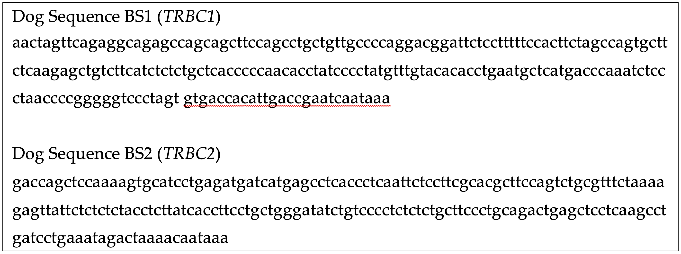| Dog | TRBC2 | D16410.1 | nr |