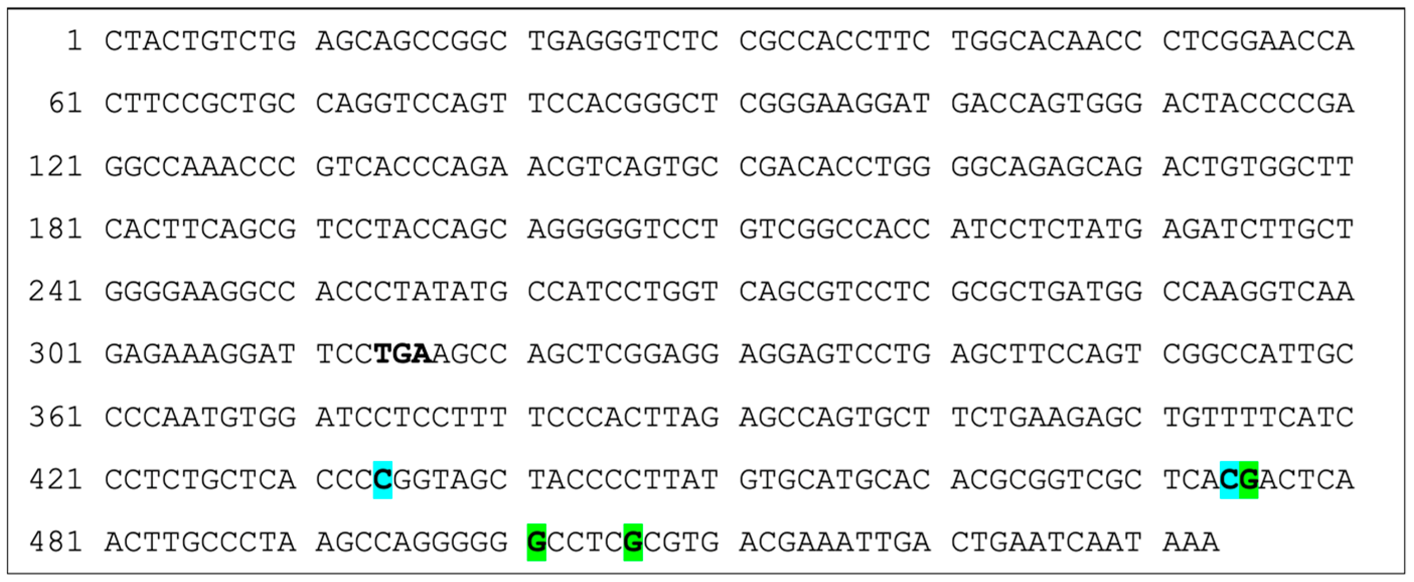 3.1. Confirmation of Sequences and Intronic Structures Shown in the International Immunogenetics Database (IMGT)