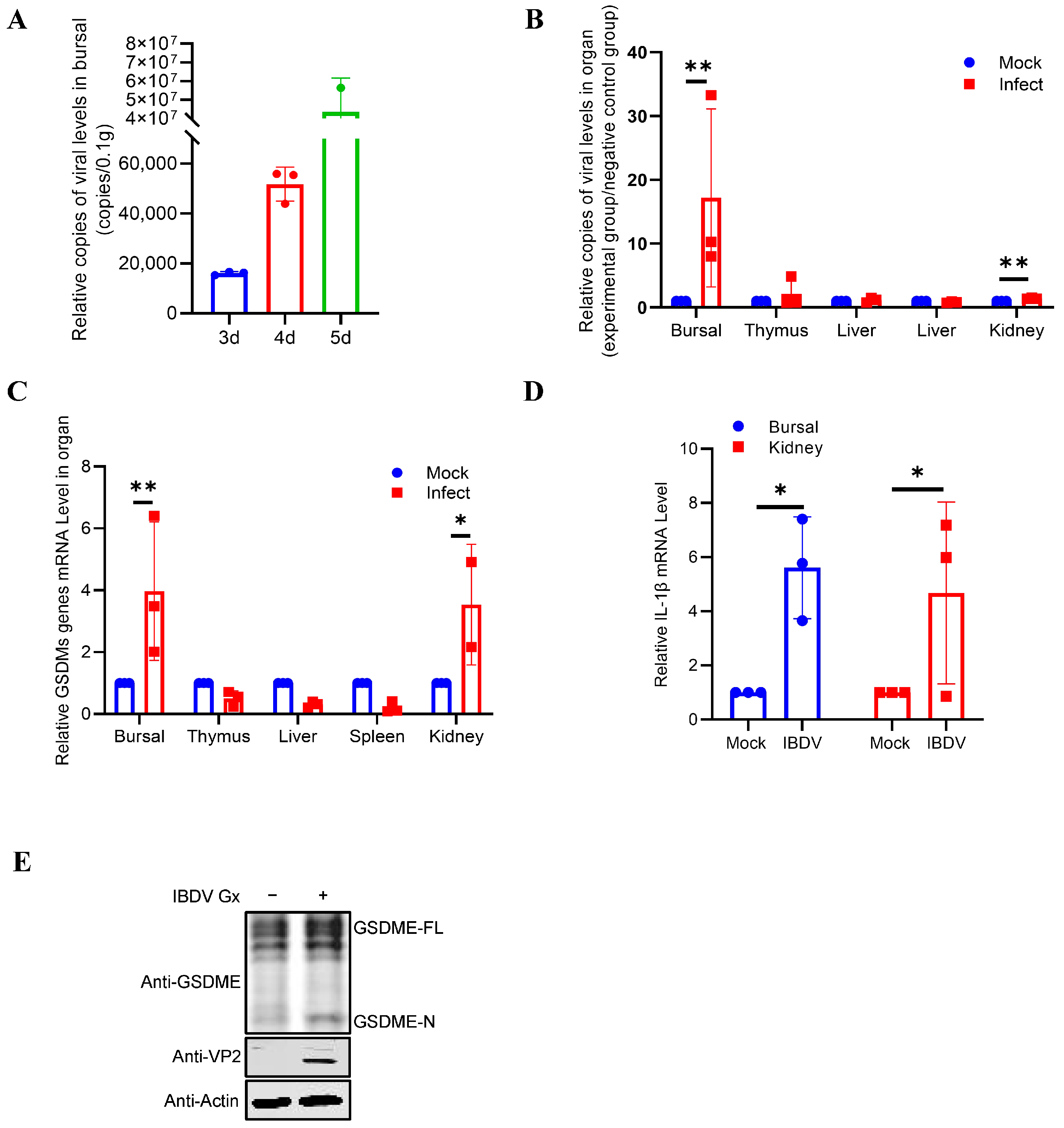 3.1. The Transcriptional Levels of GSDME and IL-1β Were Positively Correlated in the Tissues Where vvIBDV Replicated