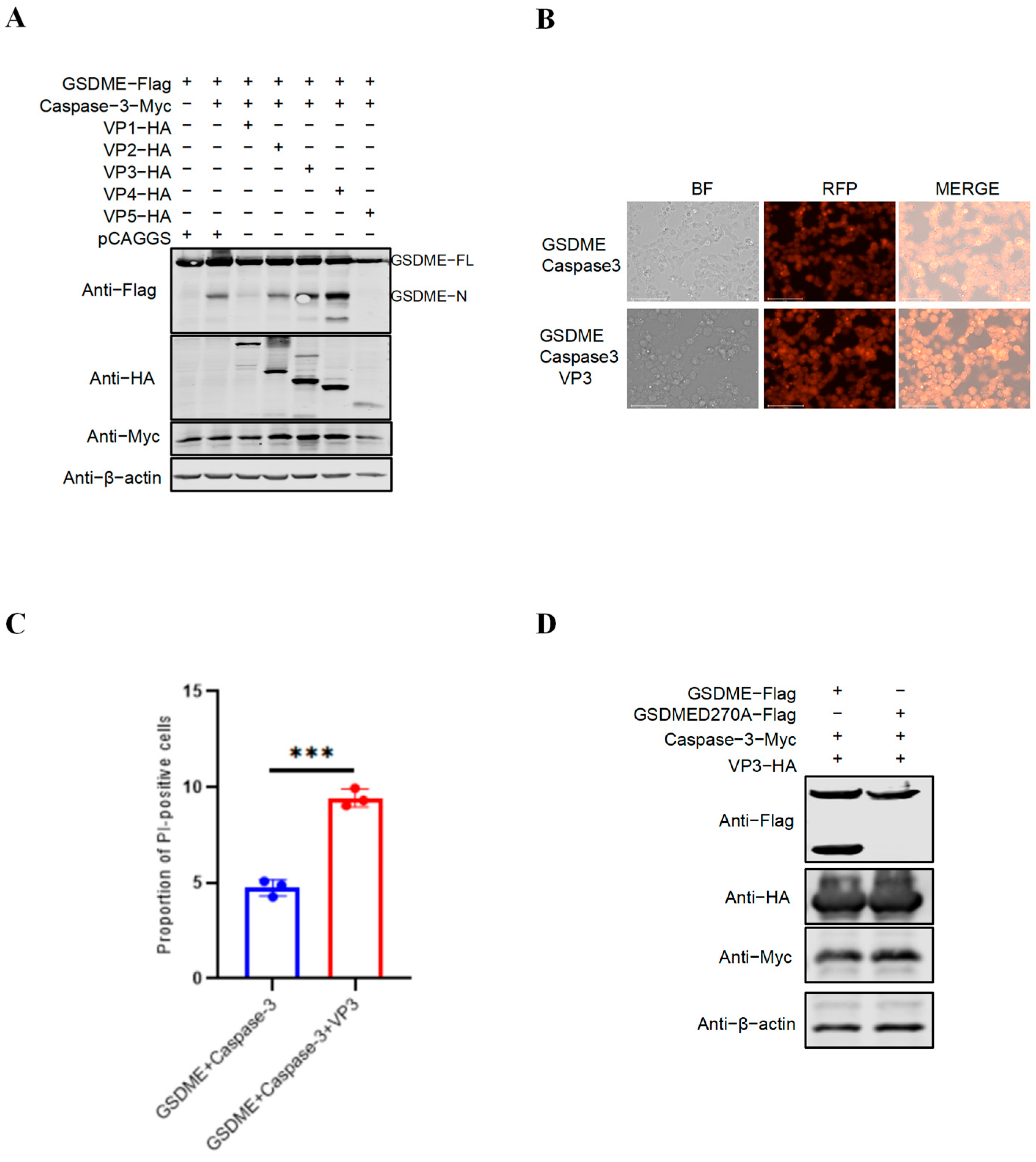 3.4. Viral Protein VP3 of vvIBDV Enhances Caspase-3-Mediated Cleavage of GSDME