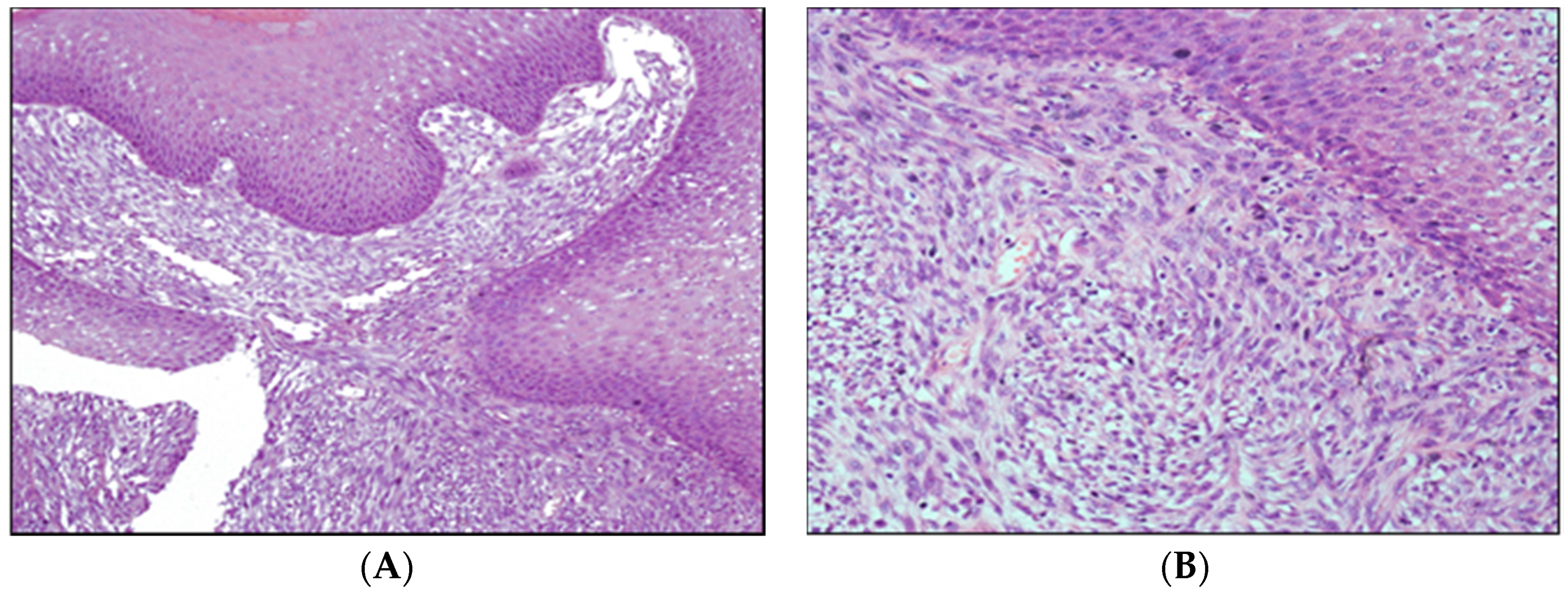 - Stopiglia, A.J.; Felizzola, C.R.; Dagli, M.L.Z.; Xavier, J.G.; Guerra, J.L.; Birman, E. Estudo clínico e anátomo-patológico das formações neoplásicas e não neoplásicas da cavidade bucal de cães. Comun. Cient. Fac. Med. Vet. Zootec. USP 1992, 16, 33–39. [Google Scholar]