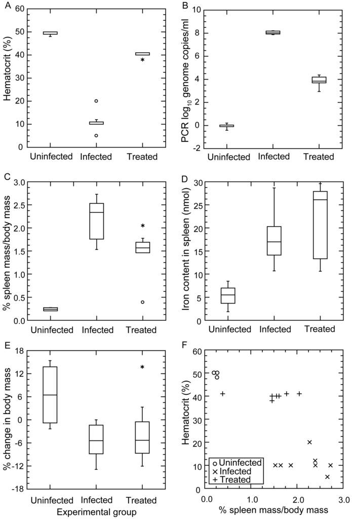 3.4.2. Changes in Hematocrit during Infection and after Antibiotic Treatment