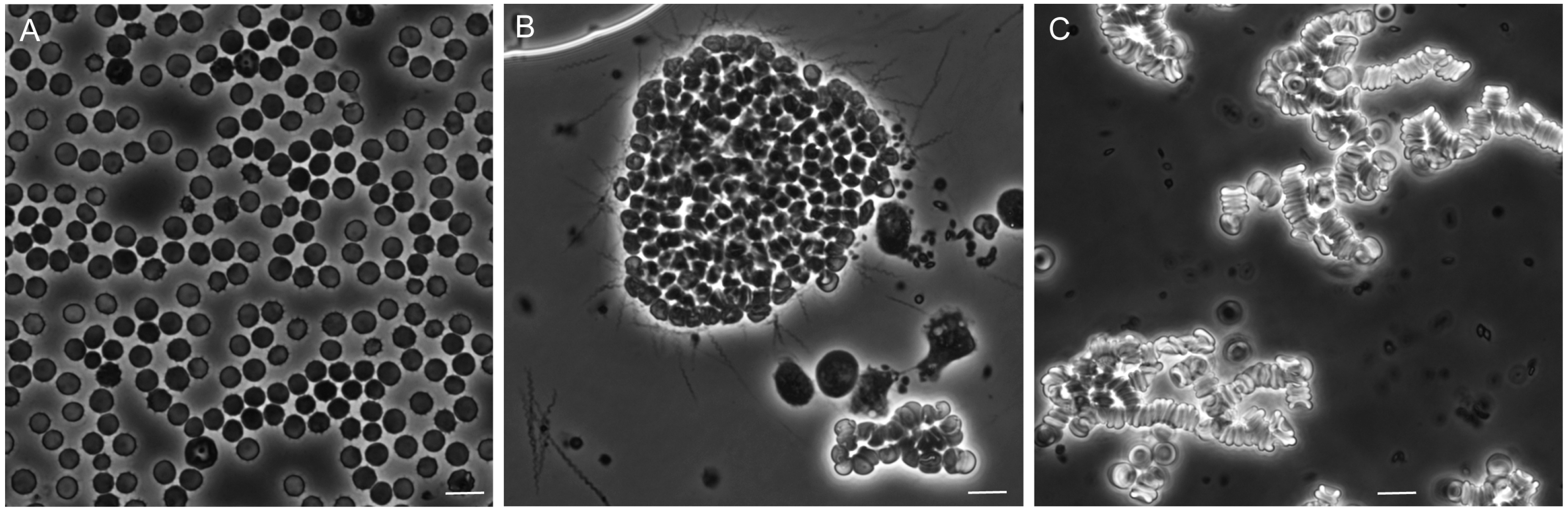 - Brust, M.; Aouane, O.; Thiebaud, M.; Flormann, D.; Verdier, C.; Kaestner, L.; Laschke, M.W.; Selmi, H.; Benyoussef, A.; Podgorski, T.; et al. The plasma protein fibrinogen stabilizes clusters of red blood cells in microcapillary flows. Sci. Rep. 2014, 4, 4348. [Google Scholar] [CrossRef] [PubMed]