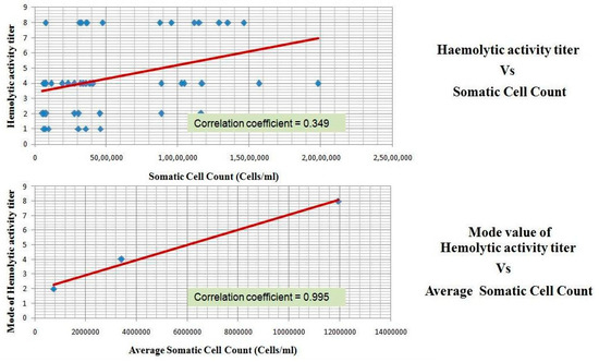 Haemolytic activity of milk whey samples and its correlation with somatic cell count.