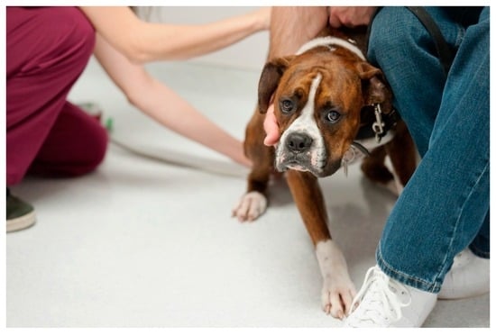 - Yin, S. Low Stress Handling, Restraint and Behavior Modification of Dogs and Cats: Techniques for Patients Who Love Their Visits; CattleDog Publishing: Davis, CA, USA, 2009. [Google Scholar]
